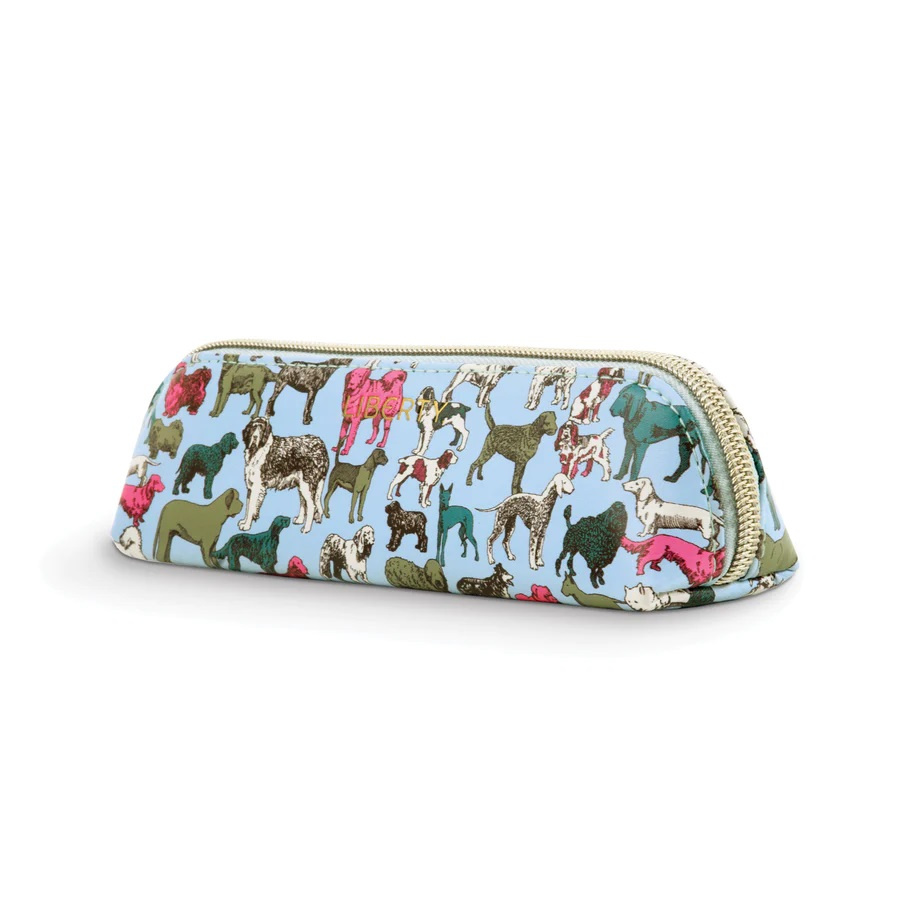 Perfektní společník do školy. Tužky, pravítka a další pomůcky si můžete bezpečně uložit, díky pevnému zipu nic neztratíte. Studio Liberty London je známo svými květinovými a grafickými potisky a nabídkou inovativních a eklektických vzorů. Tento potisk zobrazuje výstavní psy, původně potisk na šátek z roku 1989, opravdová klasika.