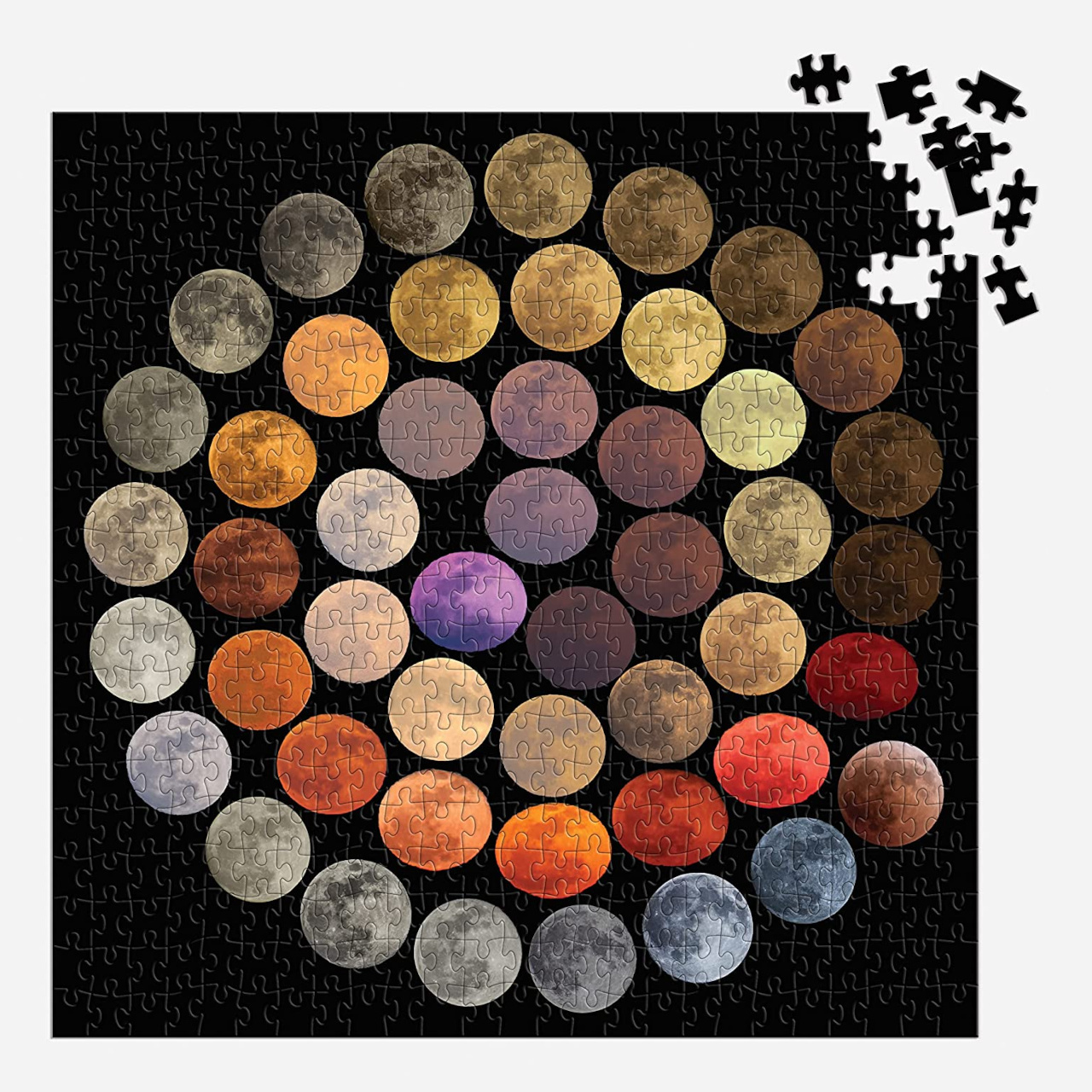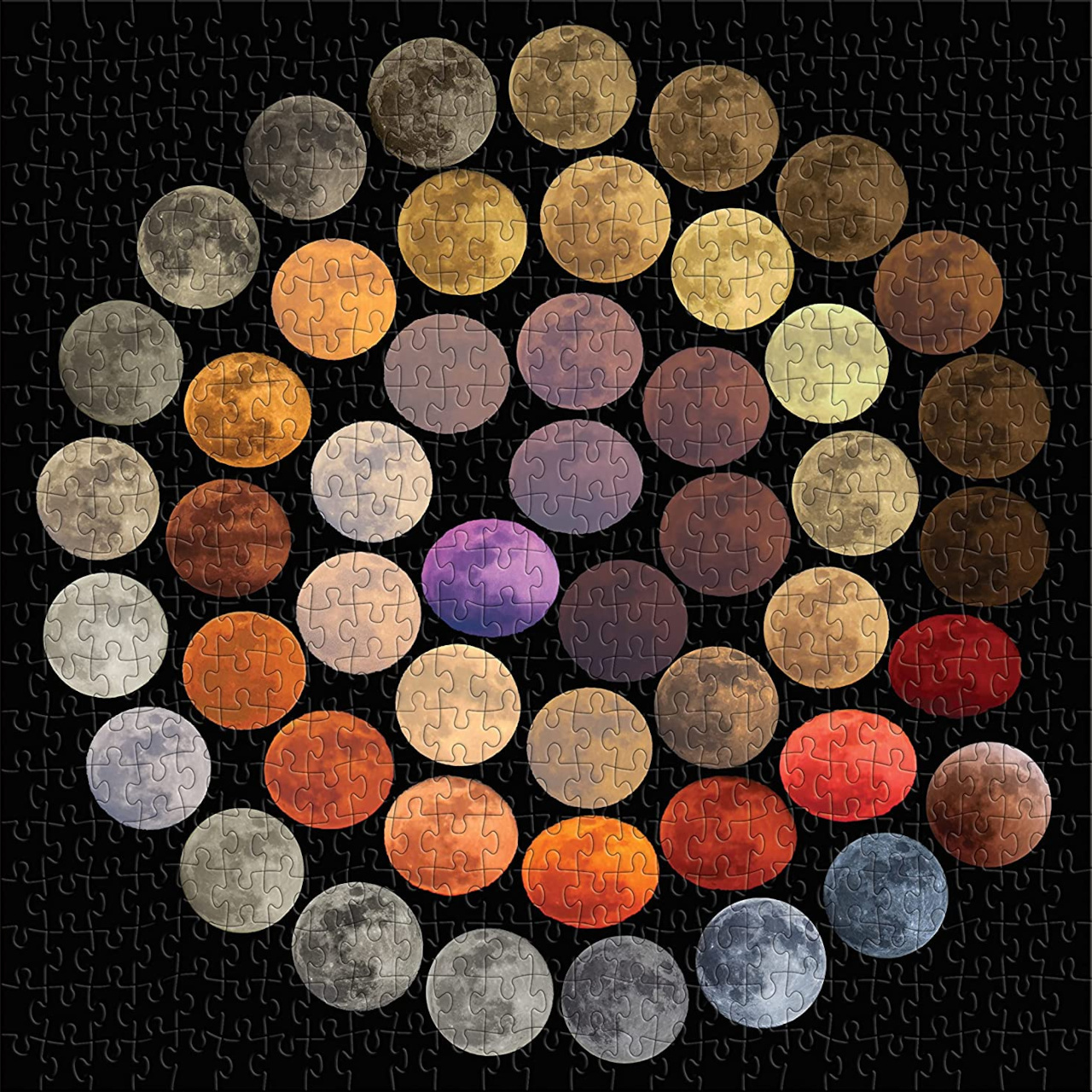 Prozkoumejte při skládání puzzle širokou paletu magických barev Měsíce v úplňku. Běžnější červenou, nebo žlutou barvu mívá Měsíc blízko obzoru. Vzácné modré zbarvení je pak zpravidla způsobeno prachovými částicemi v atmosféře. Snímky jsou dílem astrofotografky Marcelly Julie Paceové a vznikaly na různých místech její rodné Itálie v průběhu deseti let.