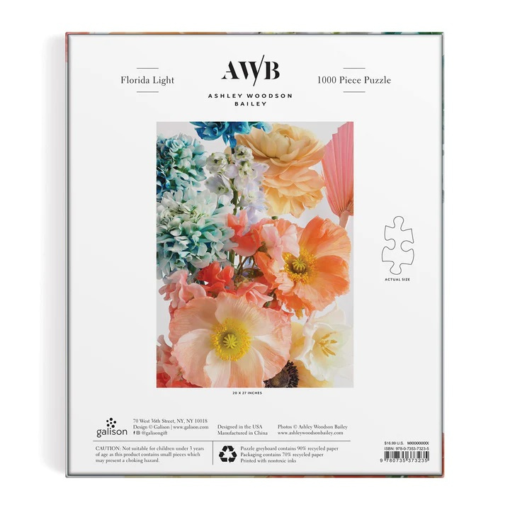 Puzzle Květy Floridy obsahuje úžasnou fotografii pastelově zbarvených květin v barvách modré, zelené, tyrkysové, broskvové, růžové a žluté. Puzzle je baleno v pevné krabici, pro opětovné použití a skladování. Ideální jako dárek. Autorem obrázku je Autorem obrázku je Ashley Woodson Bailey.