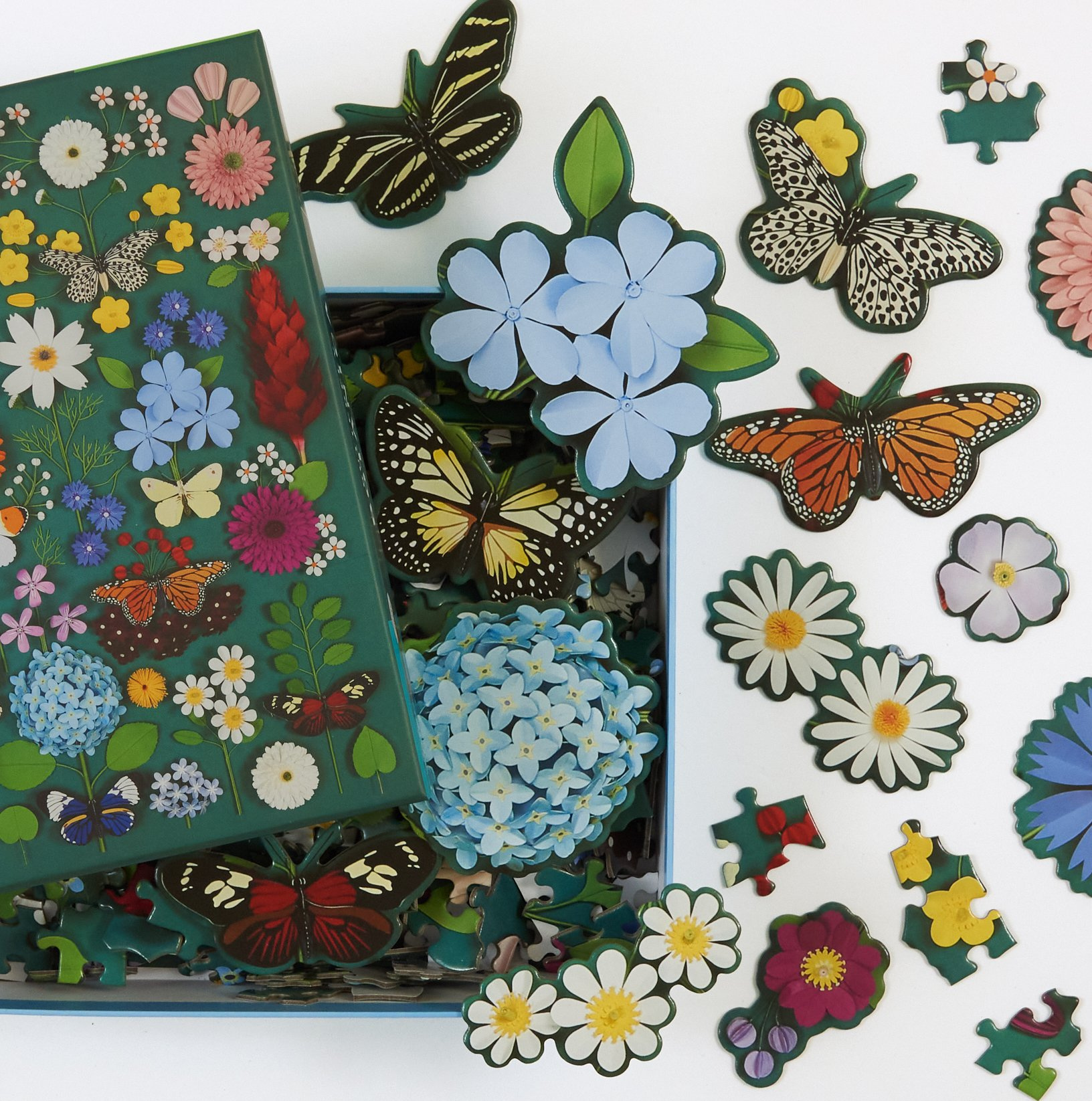Motýlí zahrada, to je 500dílné puzzle s barevnými ilustracemi motýlů a květin, v balení také 15 tvarovaných dílků. Puzzle Galison jsou zabaleny v matných, pevných krabicích, jsou perfektní jako dárek. Můžete ji také použít jako úložný prostor. V balení také obrázek plně sestaveného puzzle jako předloha.
