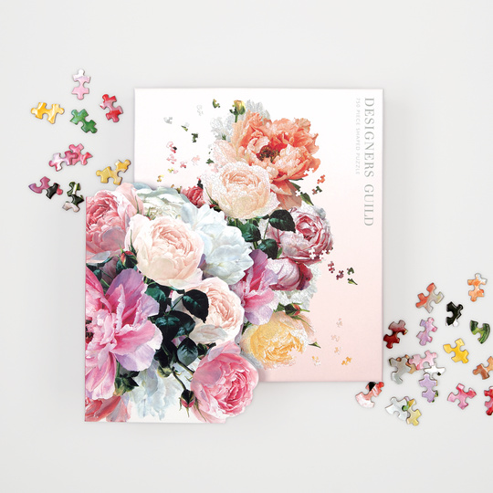 Společnost Designers Guild byla založena v roce 1970 Tricií Guild. Navrhuje a vyrábí látky, tapety, čalounění a další produkty a nabízí je po celém světě. Filozofií Designers Guild je spojit kreativitu a inovaci s nejvyšší kvalitou designu produktů. Designové puzzle ve tvaru kytice pivoněk Tourangelle se skládá ze 750 jedinečných dílků a stane se ozdobou každého interiéru. Puzzle Galison jsou baleny v pevných krabicích s matným povrchem, jsou ideální jako dárek, opětovné použití a skladování.