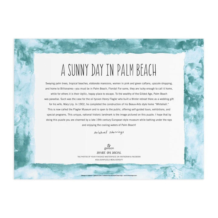 Oceňovaný designér, ilustrátor Michael Storrings vyzdvihuje perfektní den v Palm Beach. Puzzle je baleno v pevné krabici, pro opětovné použití a skladování. Ideální jako dárek. Autorem obrázku je Carina Lindmeier.