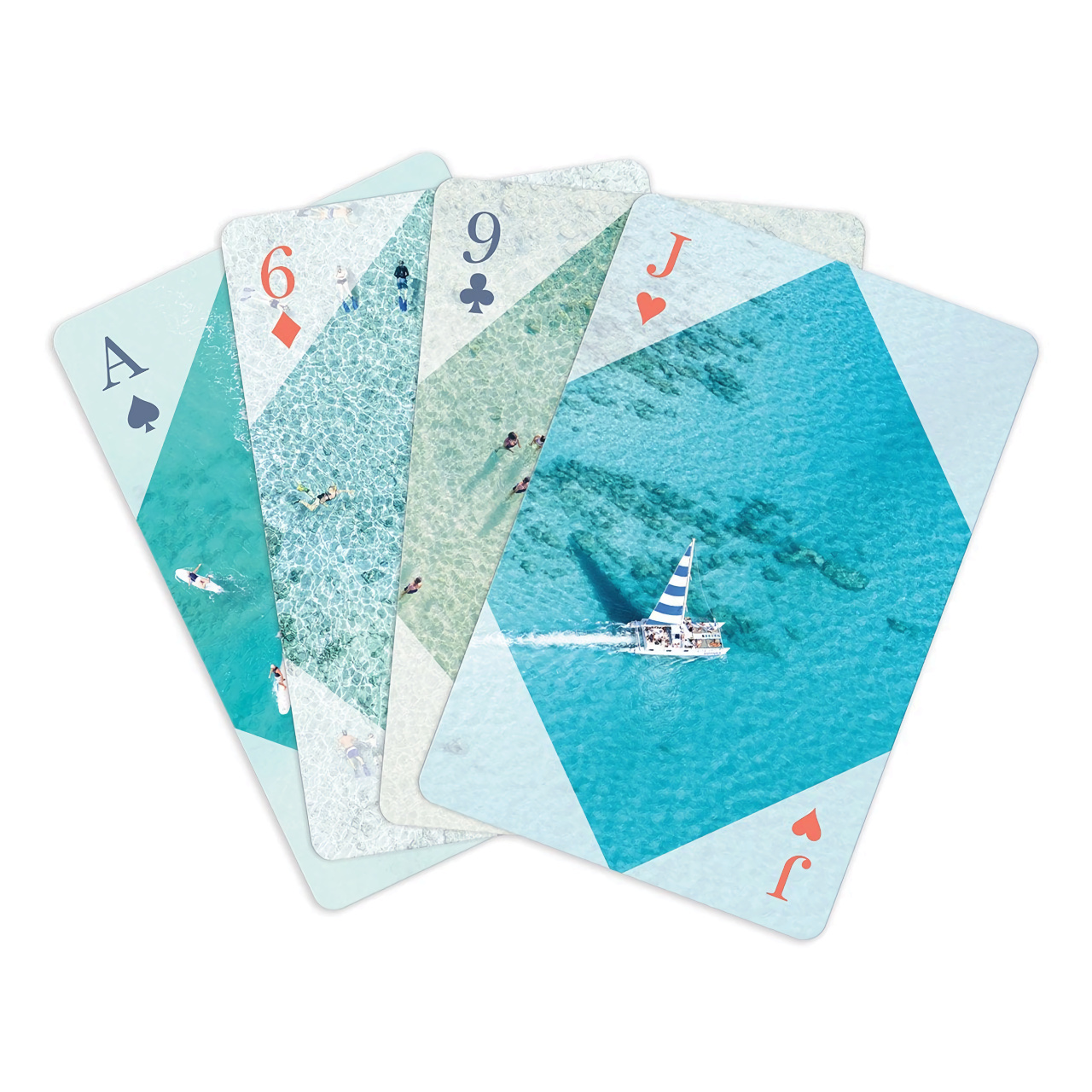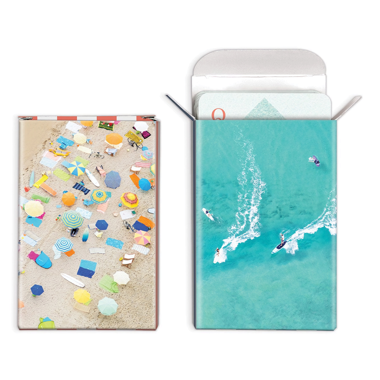 Sada originálních kanastových (žolíkových) hracích karet v luxusní kartonové krabičce. Karty i jejich obal zdobí umělecké, letecké snímky pláže, které do Vaší hry vnesou okouzlující atmosféru letní pohody a slunce.