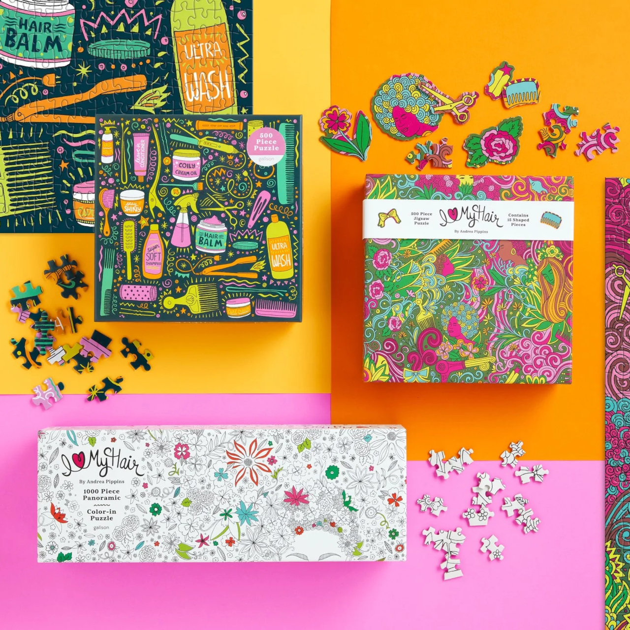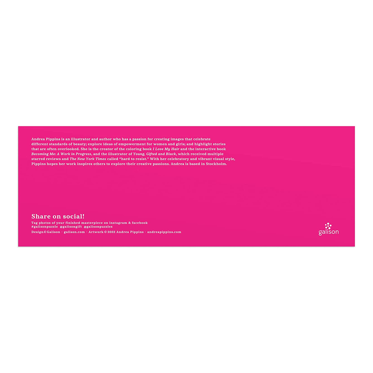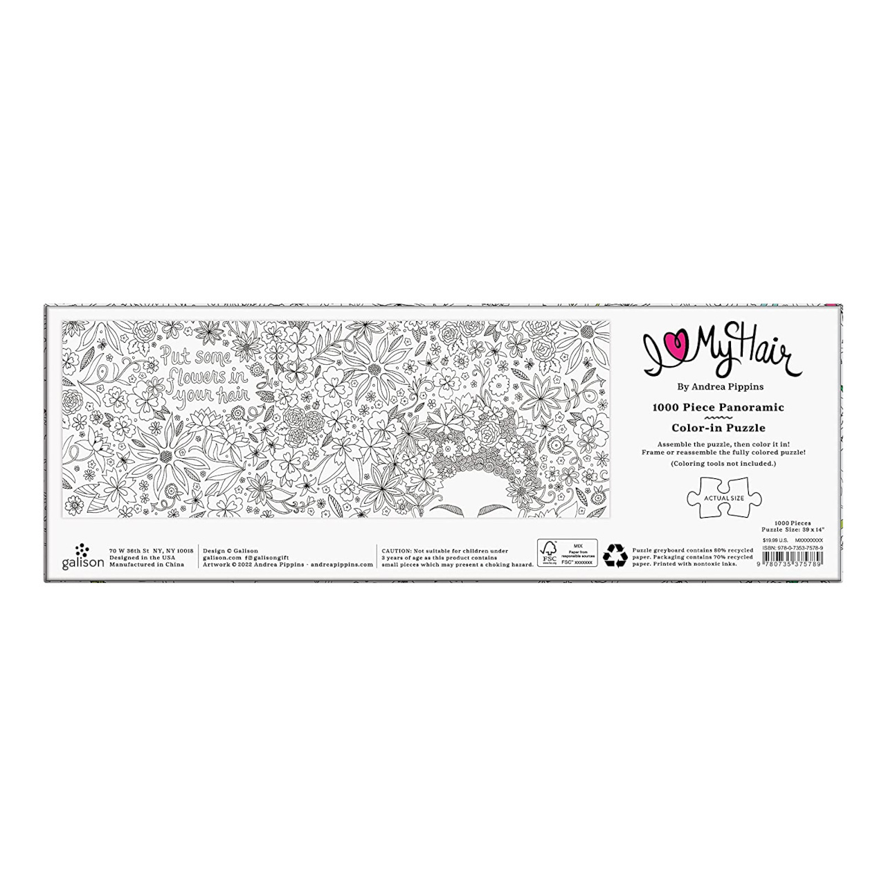 Sestavte a vybarvujte! Unikátní panoramatické puzzle přináší hned dvojitou porci zábavy pro všechny, kdo si chtějí hrát, nebo originálním způsobem vyzdobit a doplnit interiér. Černobílá ilustrace si klade za cíl probudit ve Vás lásku k ženským kadeřím a inspirovat k výběru prostředků a barev, které jsou Vám nejbližší. Autorkou díla je světoznámá skotská výtvarnice Andrea Pippins.