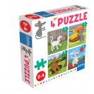 Skládačka pro děti ve věku 2 – 4 roky sestává ze 4 puzzle s obrázky zvířátek v různých obtížnostech.