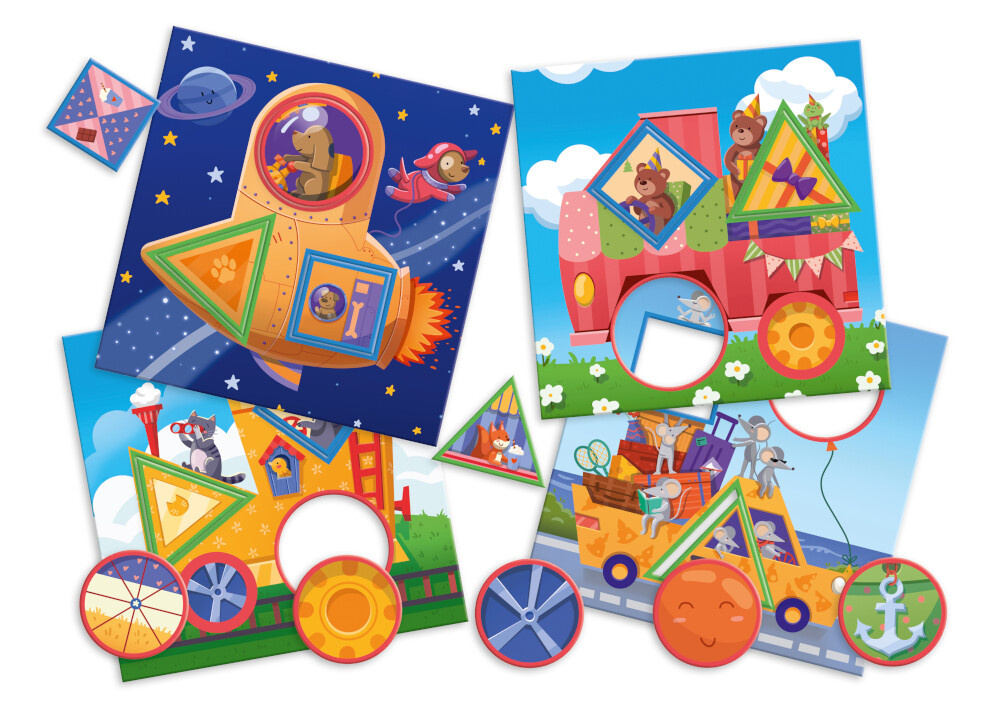 Hra Cestovatelé je originální vkládačka pro děti od 2 do 4 let. Děti se při vkládání obrázků naučí poznávat tvary kruhu, trojúhelníku a čtverce, přičemž rozvíjejí jemnou motoriku, vyjadřovací schopnosti a soustředění. Tato vzdělávací vkládačka neobsahuje žádné plasty. Vhodné pro děti od 2 let.