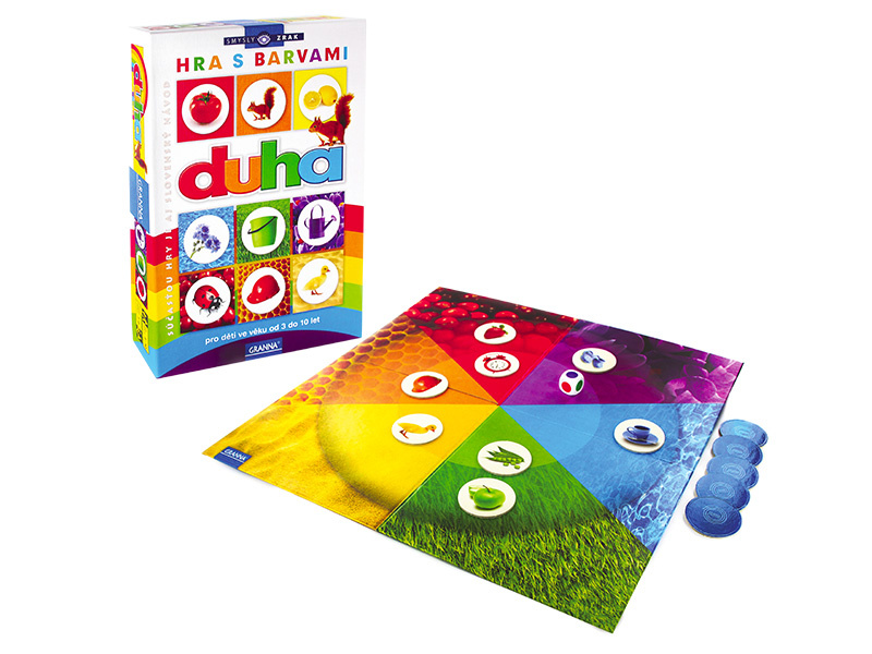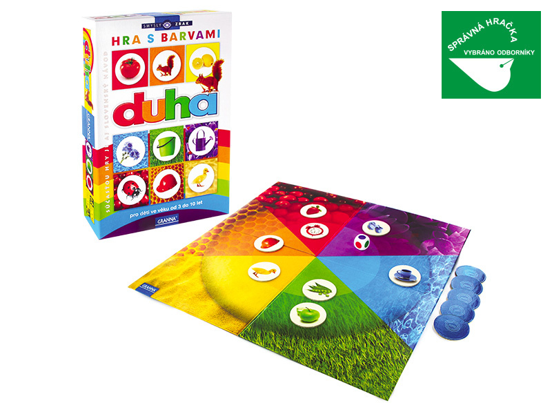 Zajímavá hra s duhovou hrací plochou a kolečky s obrázky v barvách duhy patří do nové řady s názvem SMYSLY a je věnována barvám a zraku. Je určena pro 1 až 6 hráčů od 3 do 10 let. Učí malé děti poznávat barvy a pojmenovávat věci či zvířátka. Starší děti si v této hře při hledání „poslušných“ a „neposlušných“ koleček procvičují soustředění a paměť. Návod nabízí tři různé herní varianty. Oceněno titulem „Správná hračka“.