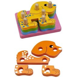 Rozměry: 10x13x6 cm Věk: 1,5+ Nasazování barevných dílů na tyče umožňuje dětem nejen rozvíjet jejich motoriku rukou, ale také jejich prostorové myšlení. Dřevěná hračka splňuje všechny normy EU. Firma HJ toys patří mezi primární světové výrobce dřevěných hraček. Vyváží své výrobky do více než 60 zemí a regionů v Evropě, Americe, Austrálii, Asii a Africe. HJ toys vyvíjí a vyrábí více než 1000 různých druhů známých dřevěných hraček jako jsou vláčkodráhy, motorické hračky, výukové hračky, vkládací puzzle, dřevěné korálky, papírové a dřevěné skládačky, stolní hry, dětské hudební nástroje atd. Všechny dřevěné hračky firmy HJ toys jsou ekologické a atestované pro evropský trh a EU. , ,