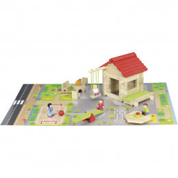Dřevěná stavebnice školky rozvíjí fantazii a stane se ozdobou dětského pokoje. Stavebnice Jeujura Constructions mají dlouhou tradici a patří mezi klasické francouzské hračky. Nabízí série tématicky věnované chatám, domkům a farmám, ale také divokému západu a středověku. Dají se mezi sebou volně kombinovat a k řadě z nich je také nabízeno příslušenství, figurky a vozidla. Jsou vyráběny ve Francii, z masivního bukového a borovicového dřeva francouzského původu. Dílky jsou ošetřeny výhradně za použití barev a laků na bázi vody. Každá sada je balena v praktickém lepenkovém kufříku potištěném rostlinnými inkousty a součástí balení je snadno pochopitelný návod.