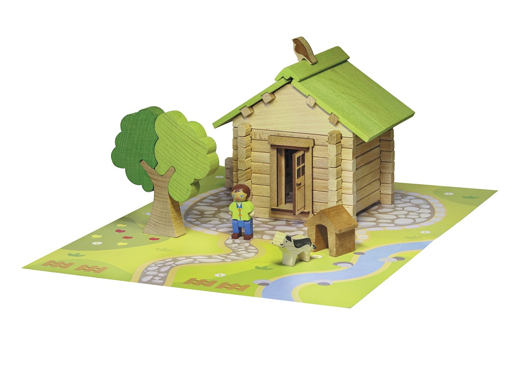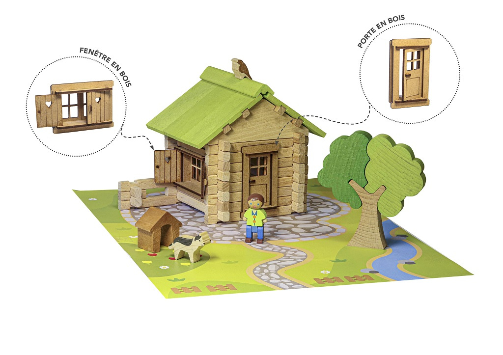 Pomozte malému tesaři postavit dům zítřka! Prkna, štíty, hřebeny, dlaždice a dokonce i dveře, okno a jeho okenice... vše máte po ruce! Stavebnice Jeujura Constructions mají dlouhou tradici a patří mezi klasické francouzské hračky. Nabízí série tématicky věnované chatám, domkům a farmám, ale také divokému západu a středověku. Dají se mezi sebou volně kombinovat a k řadě z nich je také nabízeno příslušenství, figurky a vozidla. Jsou vyráběny ve Francii, z masivního bukového a borovicového dřeva francouzského původu. Dílky jsou ošetřeny výhradně za použití barev a laků na bázi vody. Každá sada je balena v praktickém lepenkovém kufříku potištěném rostlinnými inkousty a součástí balení je snadno pochopitelný návod.