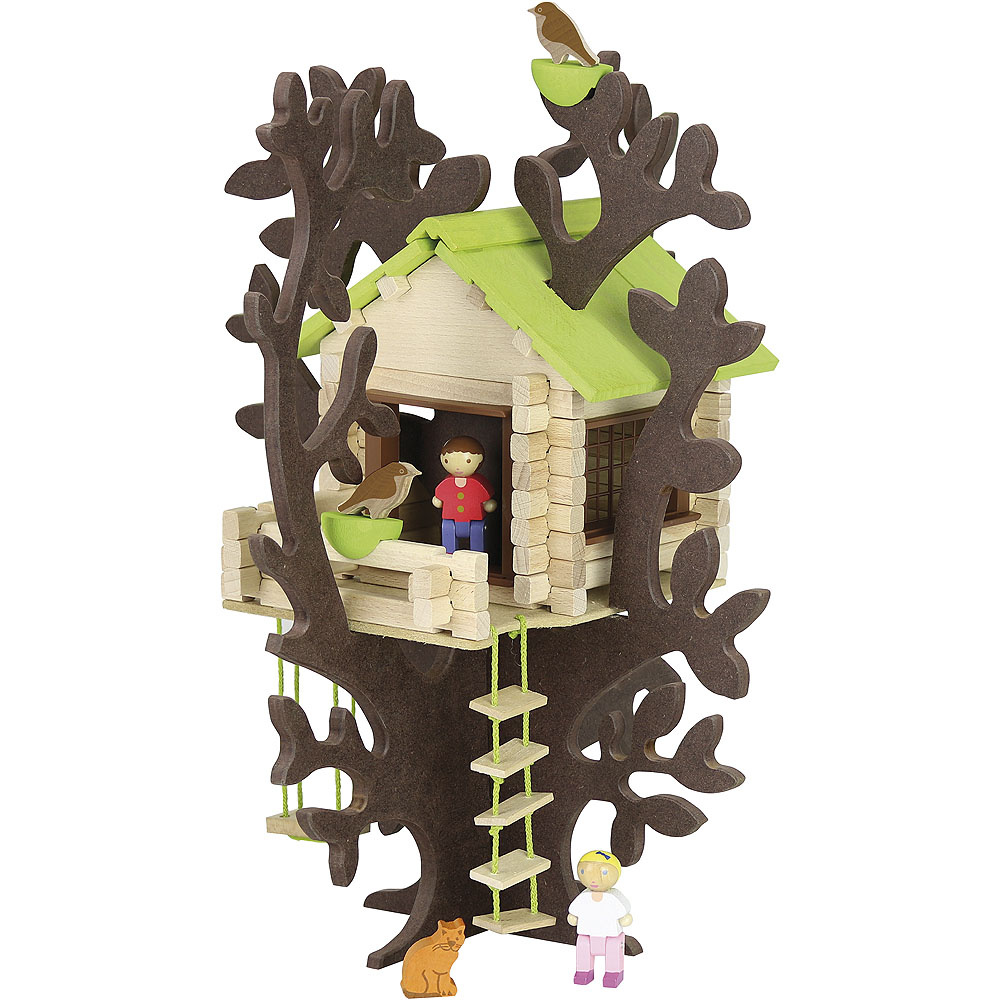 Dřevěná stavebnice domečku ke hrám s figurkami rodin rozvíjí fantazii a stane se ozdobou dětského pokoje. Stavebnice Jeujura Constructions mají dlouhou tradici a patří mezi klasické francouzské hračky. Nabízí série tématicky věnované chatám, domkům a farmám, ale také divokému západu a středověku. Dají se mezi sebou volně kombinovat a k řadě z nich je také nabízeno příslušenství, figurky a vozidla. Jsou vyráběny ve Francii, z masivního bukového a borovicového dřeva francouzského původu. Dílky jsou ošetřeny výhradně za použití barev a laků na bázi vody. Každá sada je balena v praktickém lepenkovém kufříku potištěném rostlinnými inkousty a součástí balení je snadno pochopitelný návod.