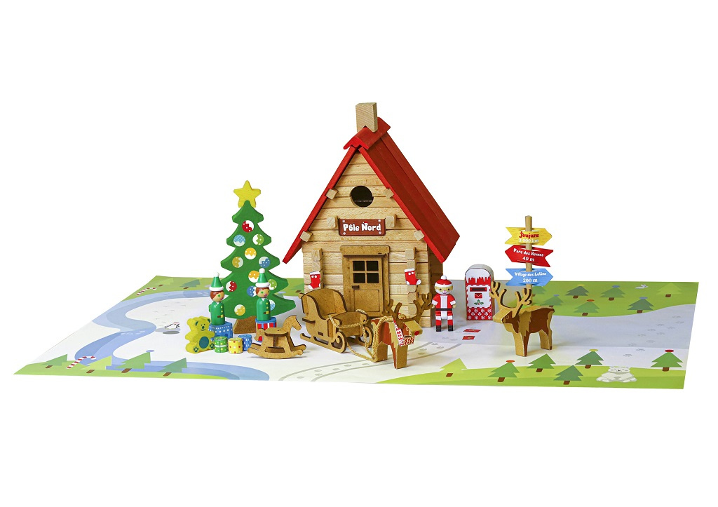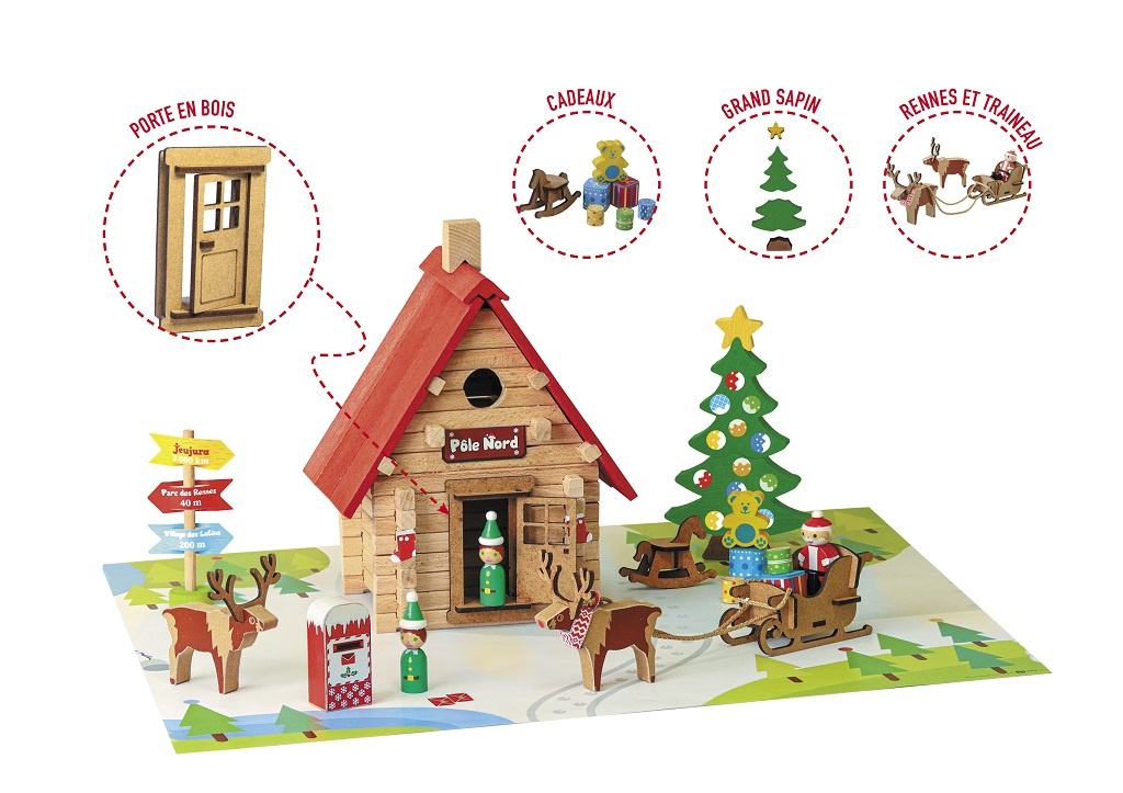Objevte kouzlo Vánoc! Nahlédněte do Santovy chaty a kochejte se krásou severního pólu! Spolu s chaloupkou a Santou v sadě také naleznete malé skřítky, sáně se soby, poštovní schránku, ukazatel a vánoční stromek s dárky. Stavebnice Jeujura Constructions mají dlouhou tradici a patří mezi klasické francouzské hračky. Nabízí série tématicky věnované chatám, domkům a farmám, ale také divokému západu a středověku. Dají se mezi sebou volně kombinovat a k řadě z nich je také nabízeno příslušenství, figurky a vozidla. Jsou vyráběny ve Francii, z masivního bukového a borovicového dřeva francouzského původu. Dílky jsou ošetřeny výhradně za použití barev a laků na bázi vody. Každá sada je balena v praktickém lepenkovém kufříku potištěném rostlinnými inkousty a součástí balení je snadno pochopitelný návod.