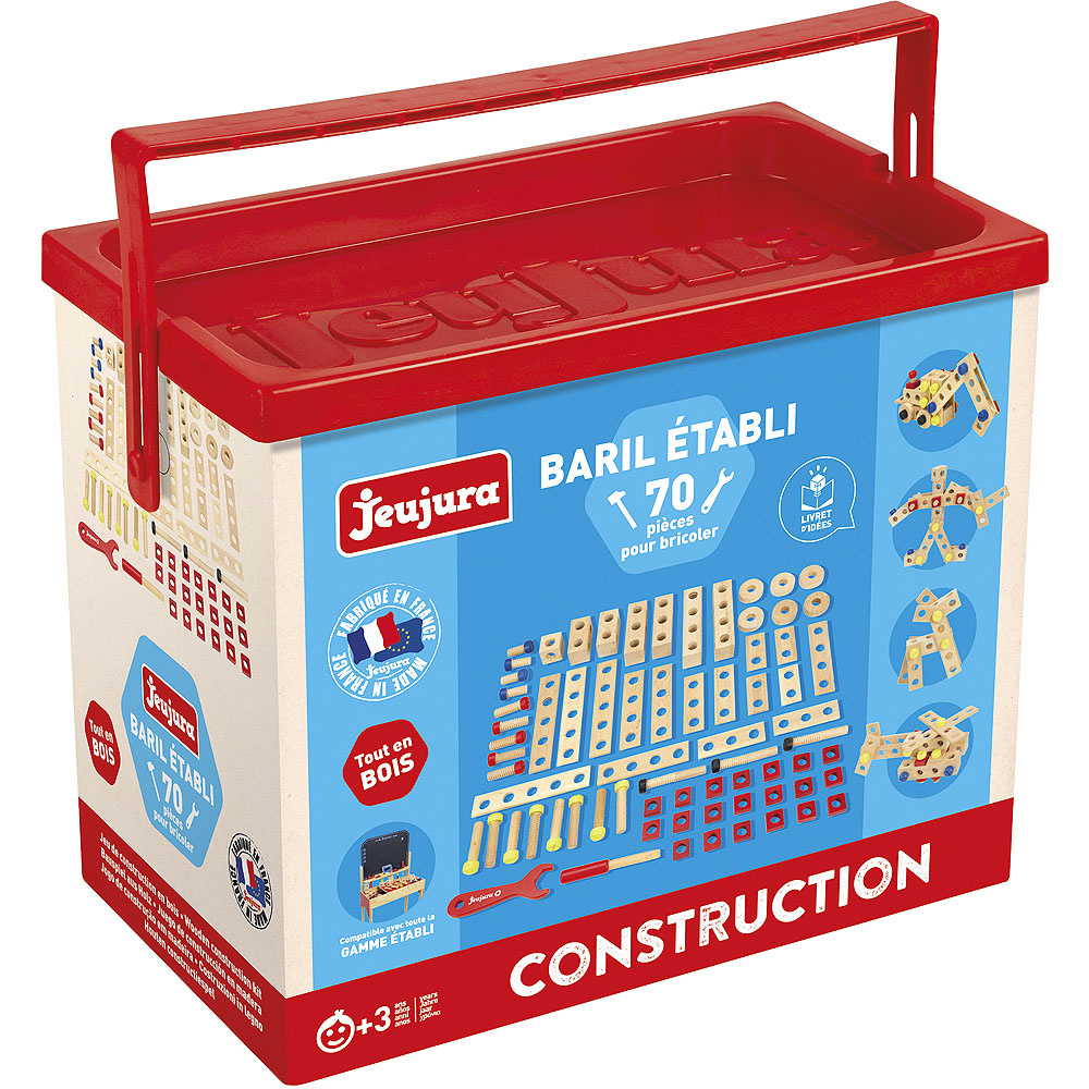 Bohatá sada různých dílů stavebnice včetně nářadí. Obsahuje šrouby, matice, kostky i kolečka. S řadou stavebnice pro malé kutily může Vaše dítě dát volný průchod své fantazii. Jednotlivé sady jsou spolu kompatibilní, lze je doplňovat, kombinovat a sbírat. S každou další sadou výrazně vzroste počet možností, které se Vašemi dítěti otevřou. S pomocí této hračky lze procvičit jemnou motoriku, logiku a soustředění. Váš malý vynálezce na ni bude v dospělosti s láskou vzpomínat. Vyrobeno ve Francii, z masivního bukového a borovicového dřeva francouzského původu. Součásti jsou ošetřeny výhradně za použití barev a laků na bázi vody. Sada je balena v praktickém lepenkovém kyblíku potištěném rostlinnými inkousty a součástí balení je brožura se vzorovými stavbami a jejich detaily.