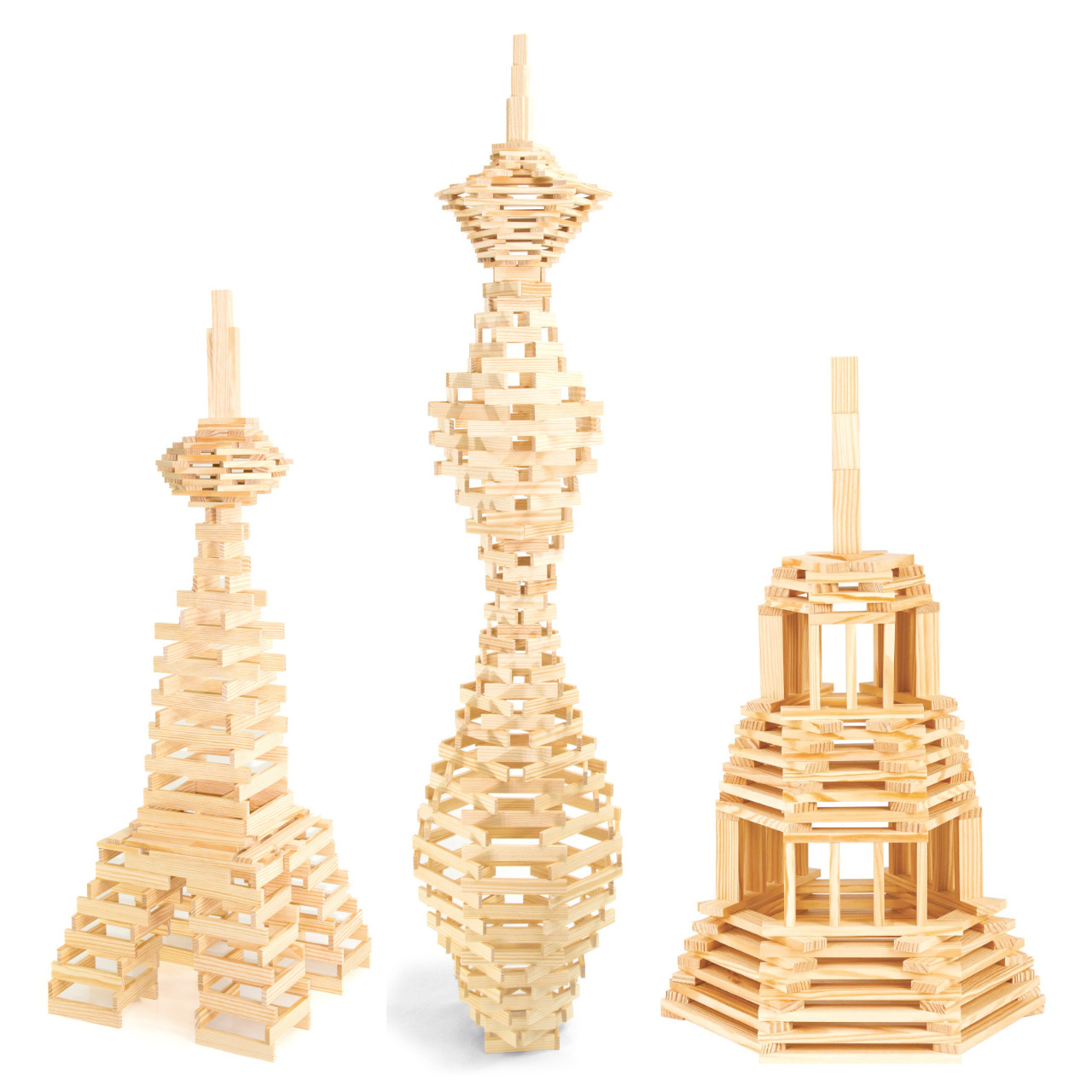 Stavebnice Jeujura Técap? 3XL nabízí široký prostor pro realizaci staveb zcela volně dle fantazie dětí. Stavebnice se skládájí z přírodních dřevěných špalíčků třech rozměrů, čímž do staveb vnášejí variabilitu a dodávají jim na složitosti. Stavbou mohou děti rozvíjet vynalézavost a jemnou motoriku. Jsou vyráběny ve Francii, z masivního bukového a borovicového dřeva francouzského původu. Dílky jsou ošetřeny výhradně za použití laků na bázi vody. Každá sada je balena v praktickém lepenkovém kyblíku potištěném rostlinnými inkousty a součástí balení jsou brožury se vzorovými stavbami a jejich detaily.