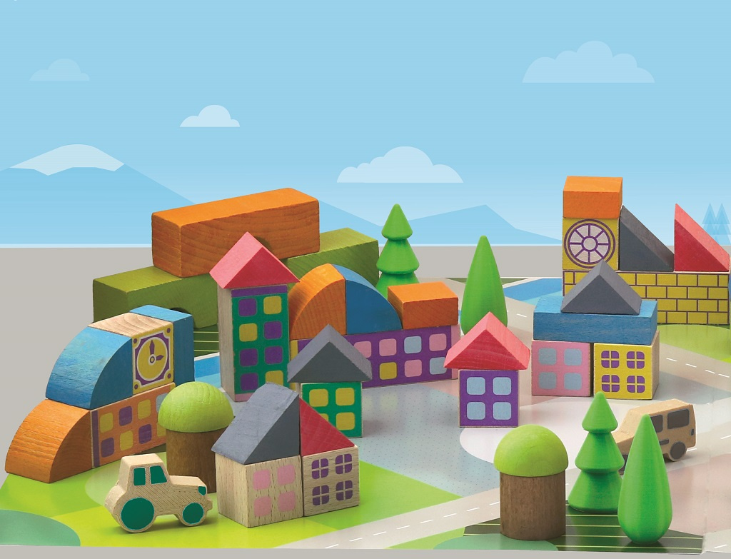 Stavebnice z klasických různorodých, pestře dekorovaných kostek, doplněné o jednoduchá dřevěná vozidla a herní podložku. Jsou vyráběny ve Francii, z masivního bukového a borovicového dřeva francouzského původu. Kostky jsou ošetřeny výhradně za použití barev a laků na bázi vody. Každá sada je balena v praktickém lepenkovém kufříku potištěném rostlinnými inkousty.