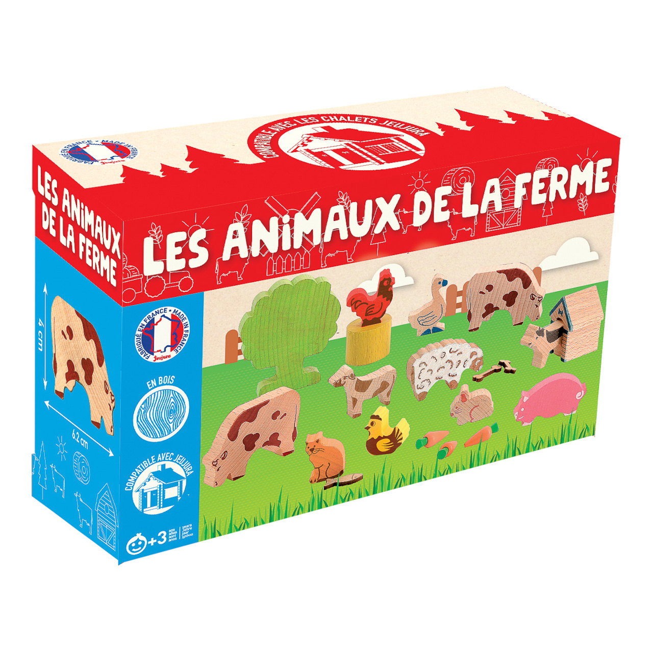 Sada hospodářských zvířat, včetně doplňků. Figurky ke stavebnicím Jeujura Constructions mohou sloužit i samostatně. Jsou nabízeny v tématicky zaměřených sériích, ale dají se různě kombinovat. Stejně jako stavebnice jsou vyráběny z masivního dřeva a jsou ošetřeny výhradně za použití barev a laků na bázi vody.