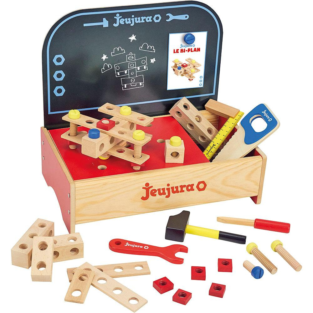 Každý kutil touží po vlastním pracovním stole. Je vybaven nejen pracovní deskou a úložným prostorem, ale i oboustrannou tabulí, která je magnetická a lze na ni psát či kreslit křídami i vhodnými fixy. Je také dodáván s bohatým příslušenstvím, nářadím a dalšími díly stavebnice. S řadou stavebnice pro malé kutily může Vaše dítě dát volný průchod své fantazii. Jednotlivé sady jsou spolu kompatibilní, lze je doplňovat, kombinovat a sbírat. S každou další sadou výrazně vzroste počet možností, které se Vašemi dítěti otevřou. S pomocí této hračky lze procvičit jemnou motoriku, logiku a soustředění. Váš malý vynálezce na ni bude v dospělosti s láskou vzpomínat. Vyrobeno ve Francii, z masivního bukového a borovicového dřeva francouzského původu. Součásti jsou ošetřeny výhradně za použití barev a laků na bázi vody. Sada je balena v krabici potištěné rostlinnými inkousty a součástí balení jsou karty se vzorovými stavbami a jejich detaily.