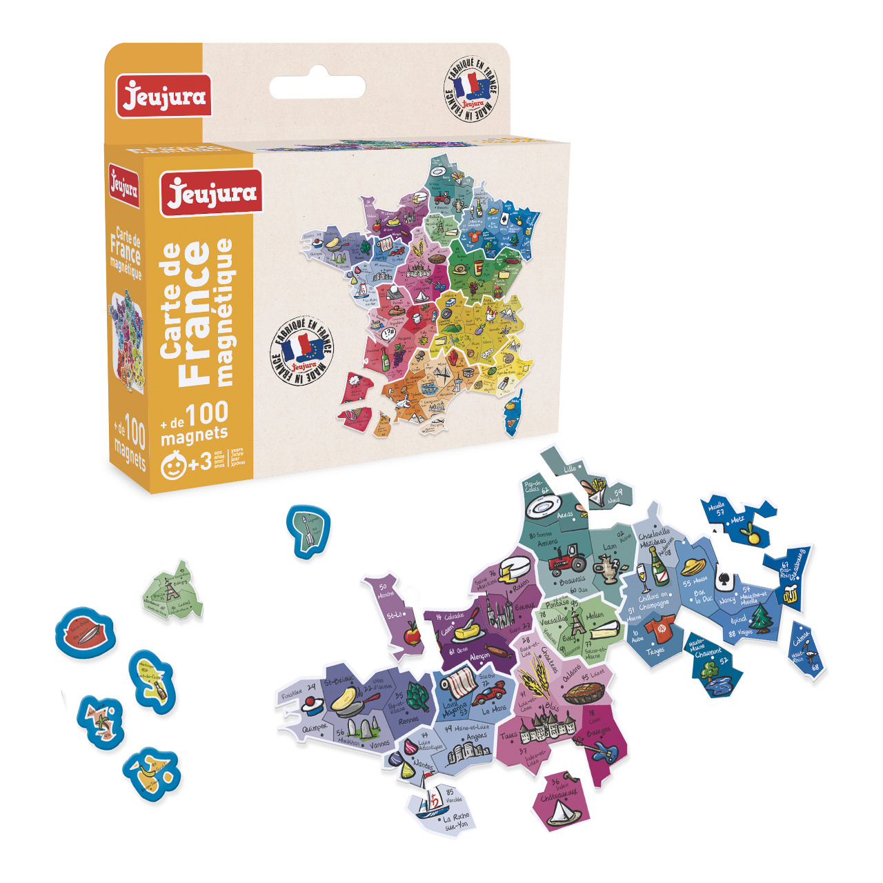 Magnetická mapa Francie s dřevěnými dílky pro zábavné poznávání zeměpisu, obsahuje 100 magnetických dílky mapy regionů Francie. Ve Francii jsou krásné hory, řeky, moře a oceán. Ale také velká a malá města, slavné památky jako Eiffelova věž a další o něco méně známé, ale stejně zajímavé místa.