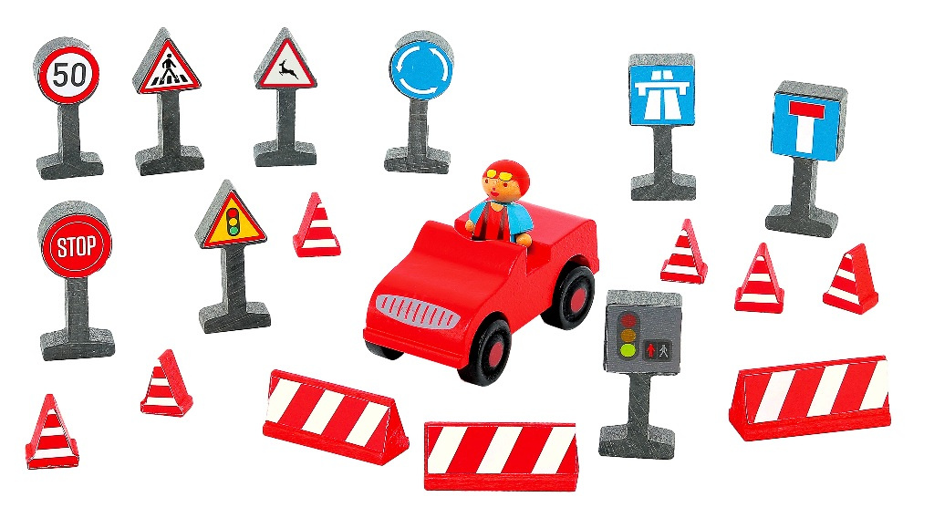 Postavička řidiče s autíčkem a dopravnmi značkami. Figurky ke stavebnicím Jeujura Constructions mohou sloužit i samostatně. Figurka řidiče má pohyblivé končetiny. Sada je nabízena v tématicky zaměřených sériích, ale dá se různě kombinovat. Stejně jako stavebnice jsou vyráběny z masivního dřeva a jsou ošetřeny výhradně za použití barev a laků na bázi vody.