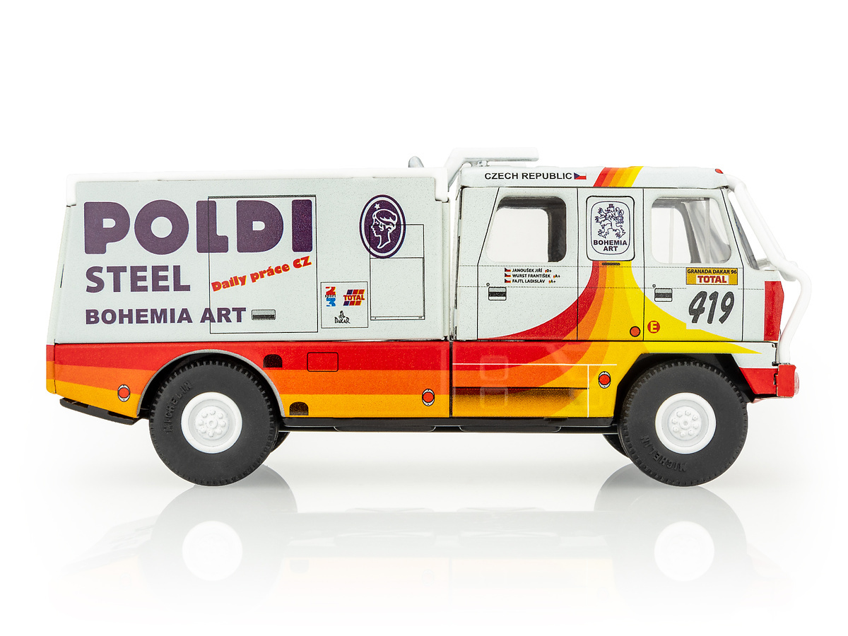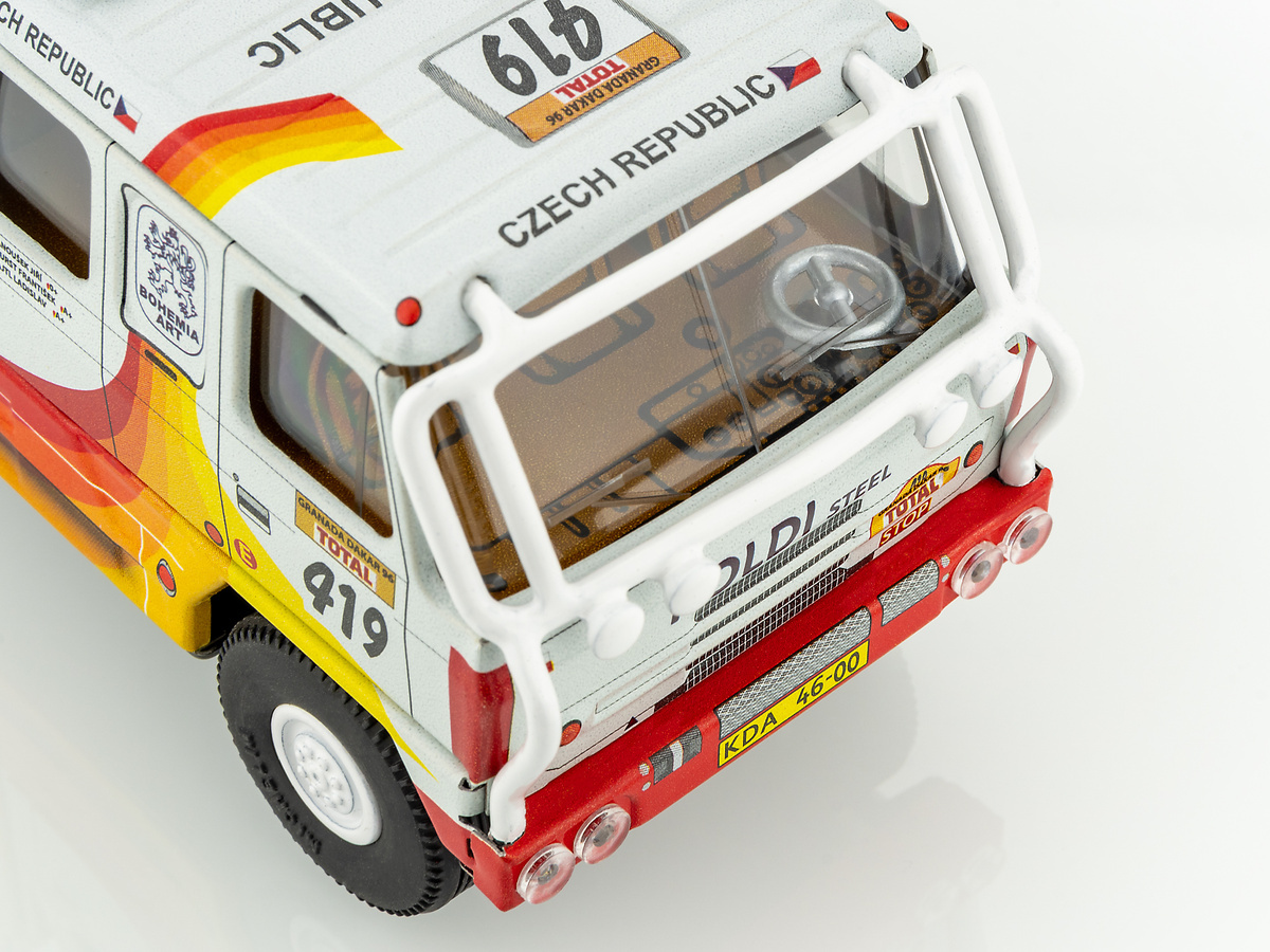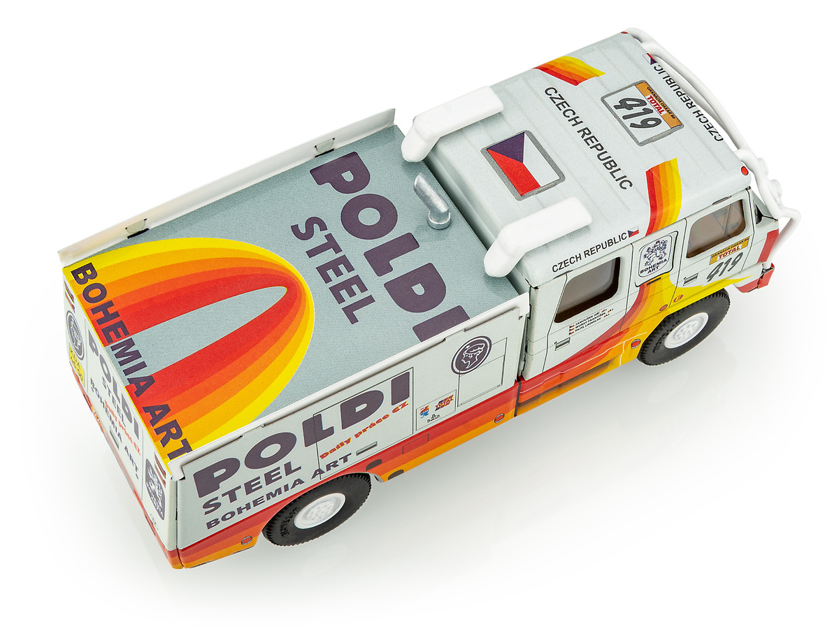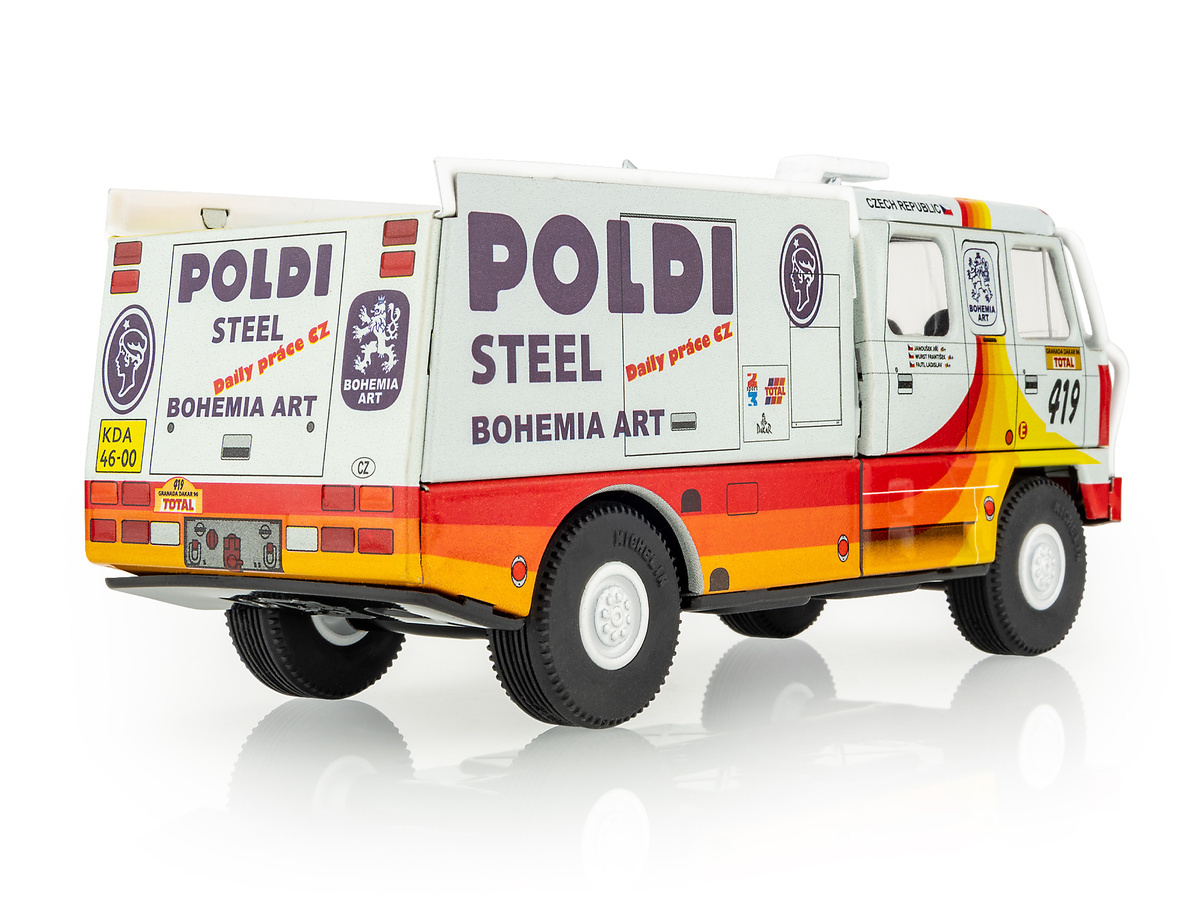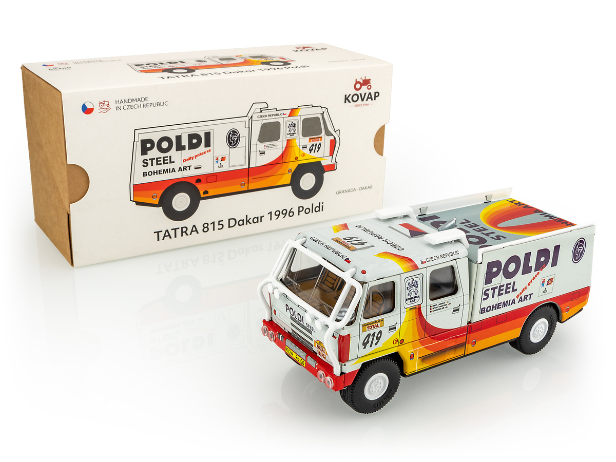 Model Tatry 815 Dakar 1996 Poldi v měřítku 1:43 z potištěného plechu, který startoval na Rallye Granada - Dakar - 18. ročník.