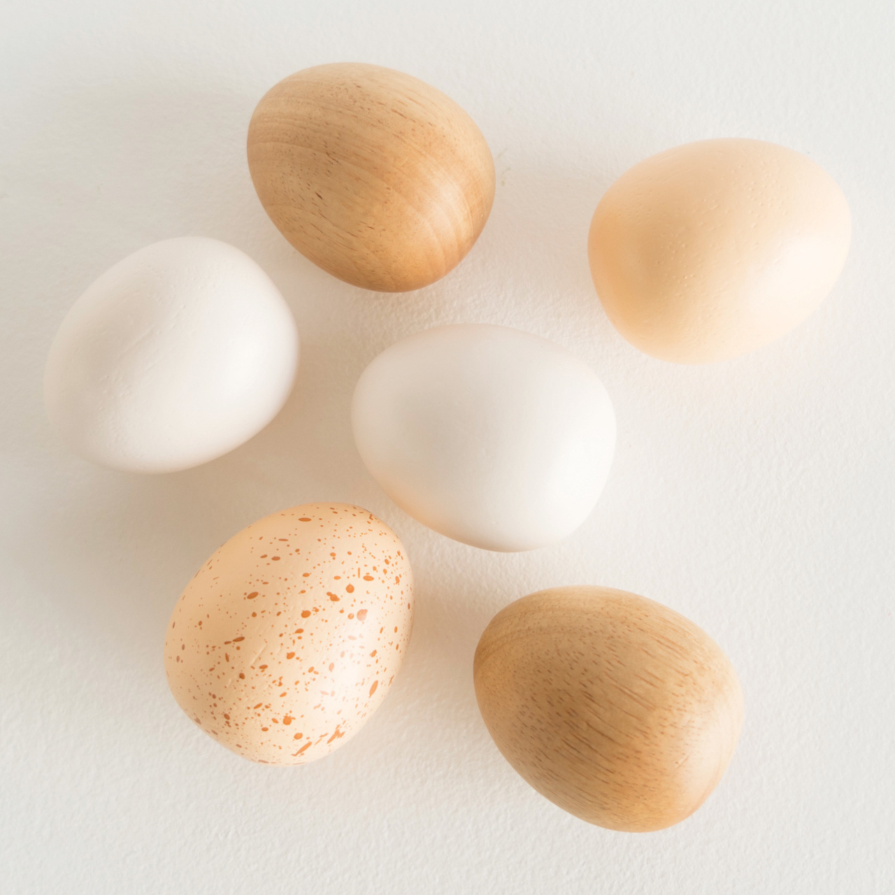 Skvělý doplněk dětských kuchyněk a prodejních stánků, farmářská vejce v bedýnce děti nadchnou k představivé hře. Šest vajec je vyrobeno z pevného kaučukového dřeva, praktická přepravka má otvory na ruce. Děti můžete díky hračce naučit o důležitosti zdravé stravy a rozdílných skupinách potravin. Hračka má velikost perfektní pro malé dětské ruce, pomáhá s rozvojem zručnosti a jemné motoriky. Hodí se k dalším bedýnkám s jídlem od Le Toy Van.