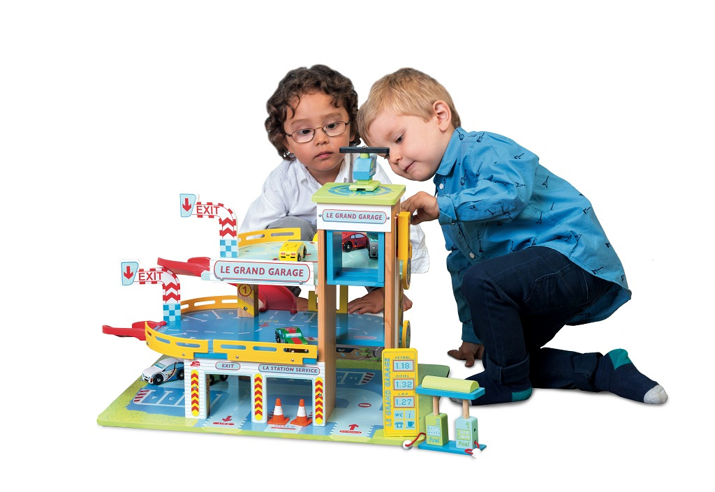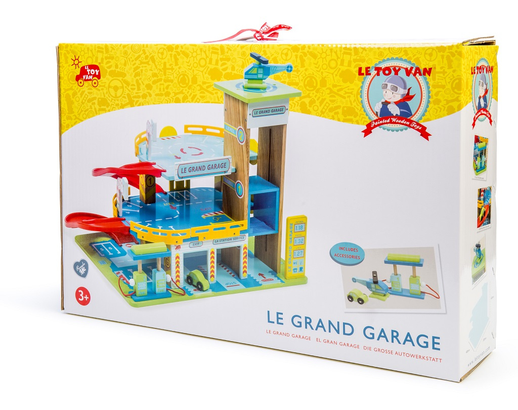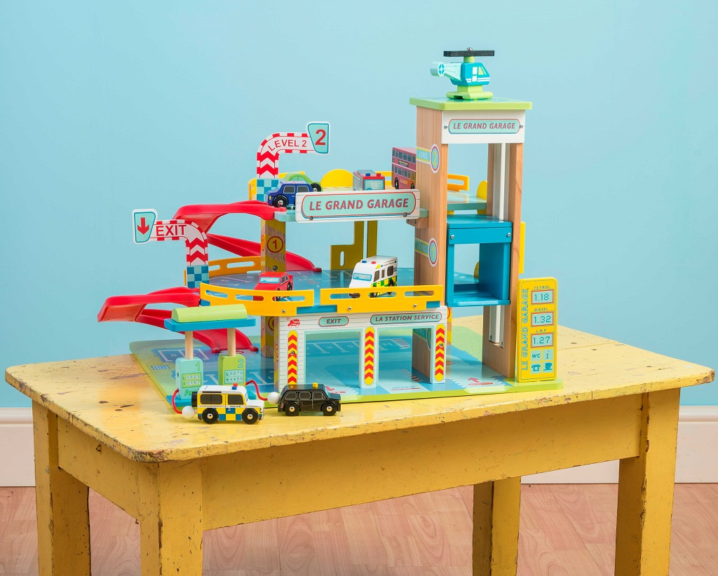 Třípatrová garáž, s kterou si děti užijí mnoho zábavy. Představivá a edukativní hračka je perfektní pro malé zvědavce, bude je inspirovat ke každodenní hře plné fantazie. Přednostmi garáže jsou 2 rampy, funkční výtah a přistávací plocha pro vrtulníky, nechybí ani pumpa, auto a helikoptéra. Moderní pojetí tradiční hračky, které je vyrobená z odolného a udržitelného kaučukového dřeva. Malováno netoxickými barvami na bázi vody. Pomůže s rozvojem jemné motoriky, zručnosti a koordinace ruka-oko.