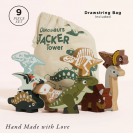 Přijměte pozvání na cestu do pravěku. S naší krásnou devítidílnou sadou veselých dinosaurů se Vaše dítě zabaví i poučí. Dinosaury si děti mohou jen tak rozložit vedle sebe nebo je různě skládat na sebe do výšky. Díky jedinečnému designu děti uvidí, jak dinosauři vypadali zvenku ale také jakou měli kostru. Figurky mají totiž z každé strany jiný obrázek.Součástí sady je také praktická plátěná taška k uložení figurek. Figurky jsou vyrobeny ze dřeva s certifikací FSC® (dřevo z lesů obhospodařovaných udržitelným způsobem) a ozdobeny barvami na vodní bázi bezpečnými pro děti.