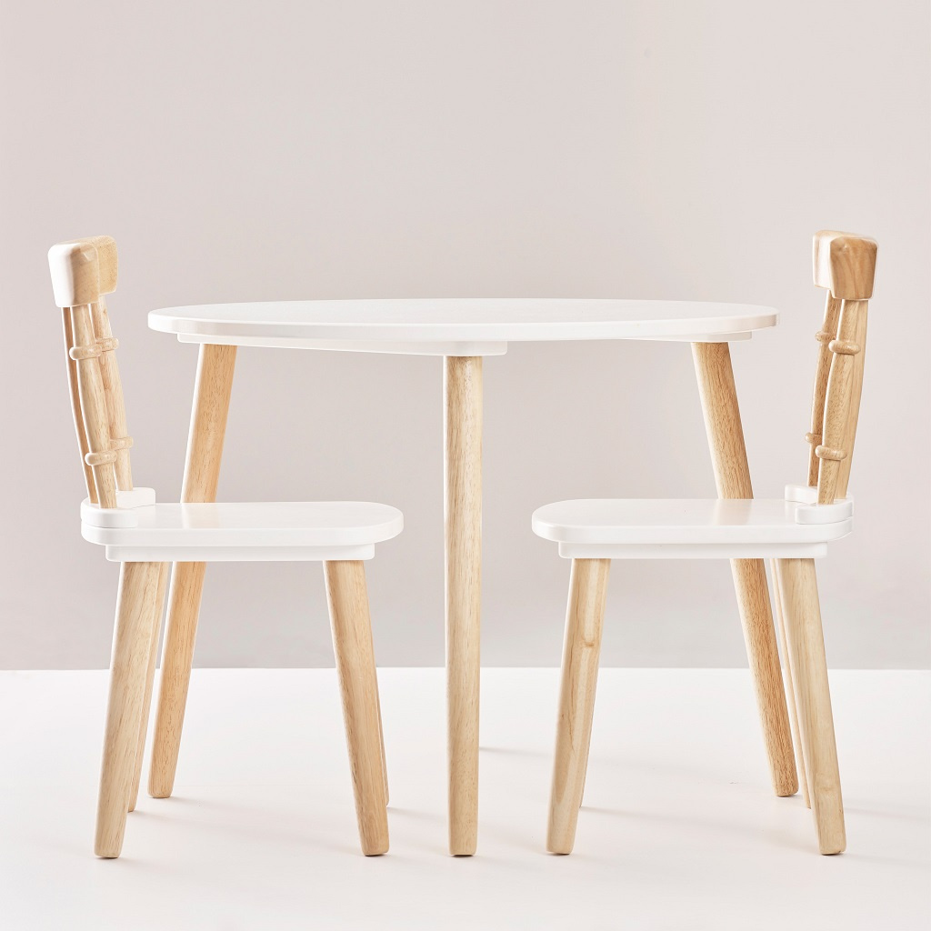 Okouzlující set dětského stolu s židlemi se bude vyjímat v každé herně či dětském pokoji. Perfektní místo pro tvoření, čtení, jedení nebo jiné zábavné aktivity. Tento multifunkční set prostě musíte mít. Nadčasový design a pevné kaučukové dřevo, stoleček a židle vám vydrží opravdu dlouho. Barevná kombinace bílé barvy a přírodního dřeva, opravdu krásný dětský nábytek, který si můžete předávat z generace na generaci.