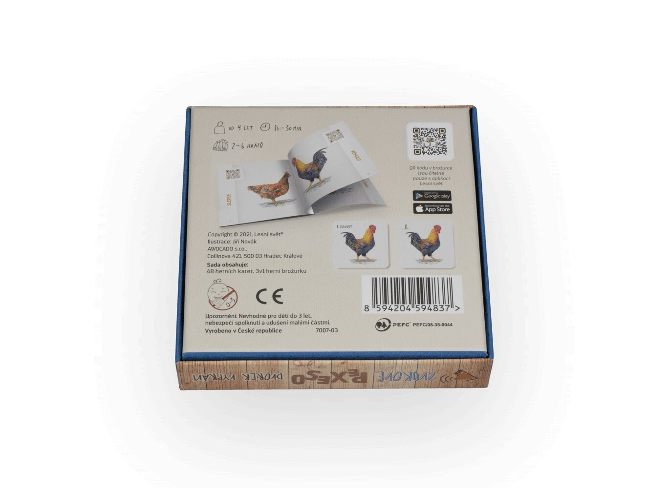 Toto zvukové pexeso - Dvorek vypráví nabízí trojnásobnou zábavu a vzdělávací hodnotu: klasické pexeso, kde je úkolem najít dvojice stejných obrázků, poznávání zvířat, kdy je název zvířete uveden pouze na jedné z každé dvojice karet, a hádání zvuků zvířat, což přidává hře zcela nový rozměr. Pro využití zvukové složky je potřeba stáhnout aplikaci Lesní Svět, která umožňuje prostřednictvím QR kódů poslouchat autentické zvuky zvířat. Tato hra je navržena tak, aby rozvíjela paměť a soustředěnost hráčů, a je vhodná pro děti i dospělé, kteří chtějí procvičit své smysly a poznávací schopnosti v zábavné formě.