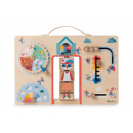 Ve středu panelu je roztomilá liška Alice, která čeká na své nové kamarády, aby jí pomohli vybrat správné oblečení do každého počasí. Alice se skládá ze tří dřevěných bloků, které děti mohou snadno otáčet a kombinovat, aby ji oblékly podle aktuálního počasí. Je venku sluníčko? Alice si oblékne své letní šaty! Je zima? Děti ji obléknou do kabátku a čepice! Díky těmto jednoduchým a zábavným aktivitám se děti nenápadně učí vybírat oblečení podle ročních období a povětrnostních podmínek, což podporuje jejich samostatnost a zlepšuje jejich porozumění světa kolem nich.