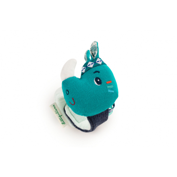 Rozkošné chrastítko na zápěstí s nosorožcem Mariusem je skvělým společníkem pro malá miminka. Náramek stimuluje dětské smysly, je zábavný a vydává zvuky při pohybu ručičkou. Děti tak objevují nové zvuky a rozvíjejí si motorické schopnosti. Rozměry náramku jsou 18 x 3 x 1,5 cm. Náramek je omyvatelný a lze ho i vyprat v pračce na jemný cyklus při 30 °C. Vyrobeno ze 100% polyesteru.