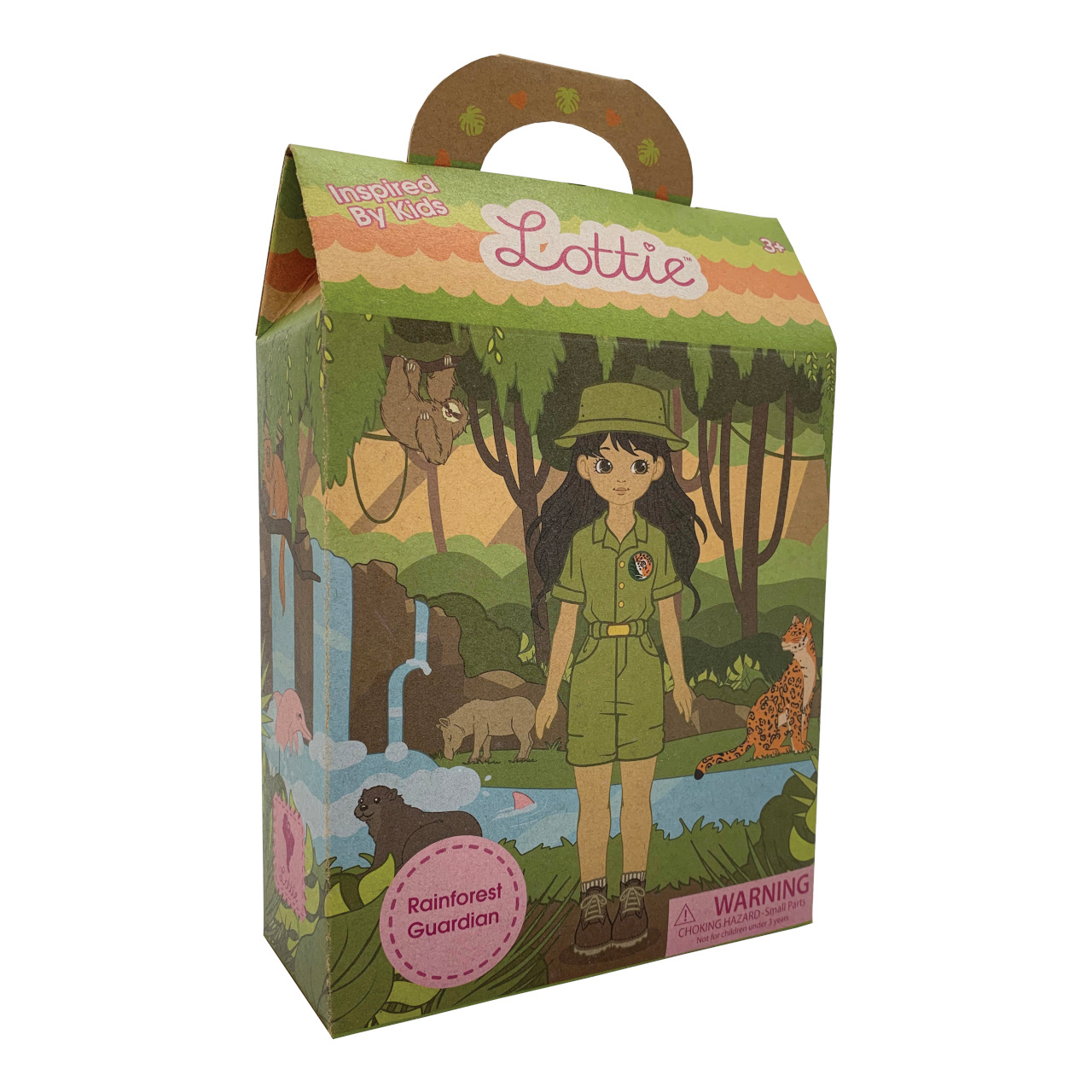 Se svým dalekohledem a lupou je připravena zkoumat a strážit deštný prales, který je domovem mnoha ohrožených zvířat a rostlin. Příroda přece skýtá tolik dobrodružství, proto je potřeba ji chránit. Ve spolupráci s organizací Rainforest Trust přichází kolekce Lottie s panenkou, která děti prostřednictvím sady kartiček provede vzácnou Amazonskou přírodou. Jako ostatní panenky z oceňované kolekce Lottie je i tato realistická a snaží se děti naučit upřímnému pohledu na svět. Lottie jsou navrženy a zvláště uzpůsobeny malým dětským ručkám, mají pohyblivá kolena a jsou vyrobeny z prémiového měkkého vinylu a nylonu, bez použití ftalátů. Každá panenka je dodávána v atraktivní barevné kartónové taštičce s plastovým průhledem a uchem.