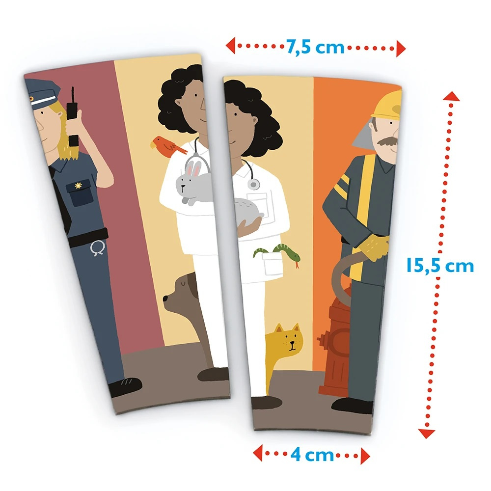 Co se k sobě hodí? Může být hasič připojen vedle zahradníka? Kde najde veterinář své místo? A kam se policistka a stavební dělník hodí nejlépe? V této hře s kruhovým umístěním jsou vyžadovány zejména kombinační dovednosti. Kdo první umístí všechny své karty, vyhrává!