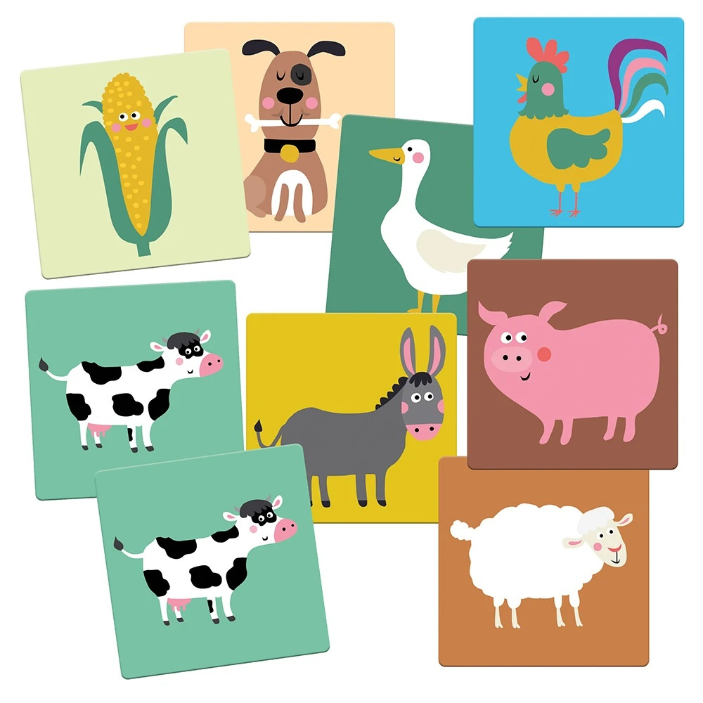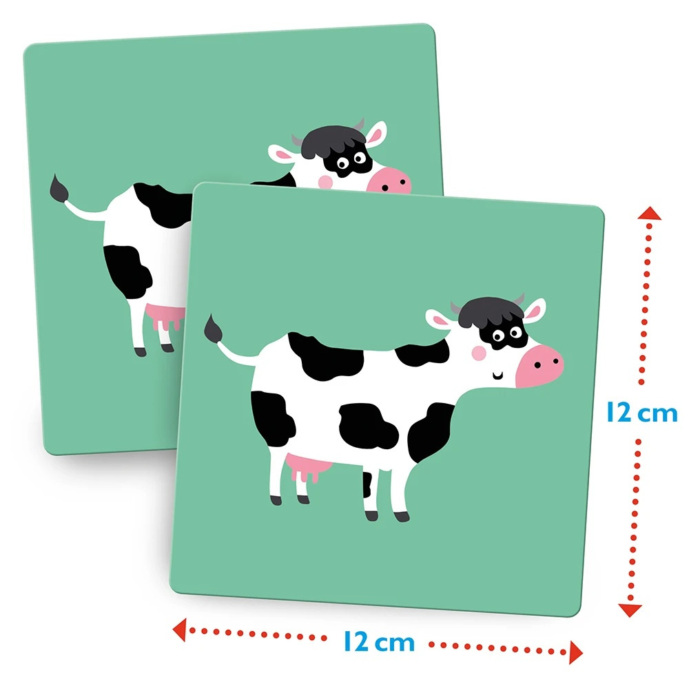 Tady leží ovečka, tam kokrhá kohout... Kdepak se skrývá kráva? Pro tuto klasickou hru je nutná nejenom dobrá paměť, ale i trpělivost. Kdo najde mezi skrytými kartami nejvíce dvojic obrázků, vyhrává!