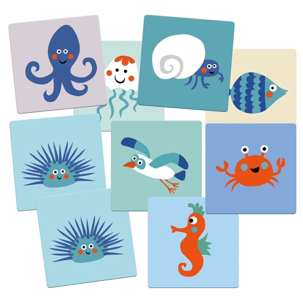 Tady letí racek, tam leží hvězdice... Kdepak se skrývá mořský koník? Pro tuto klasickou hru je nutná nejenom dobrá paměť, ale i trpělivost. Kdo najde mezi skrytými kartami nejvíce dvojic obrázků, vyhrává!