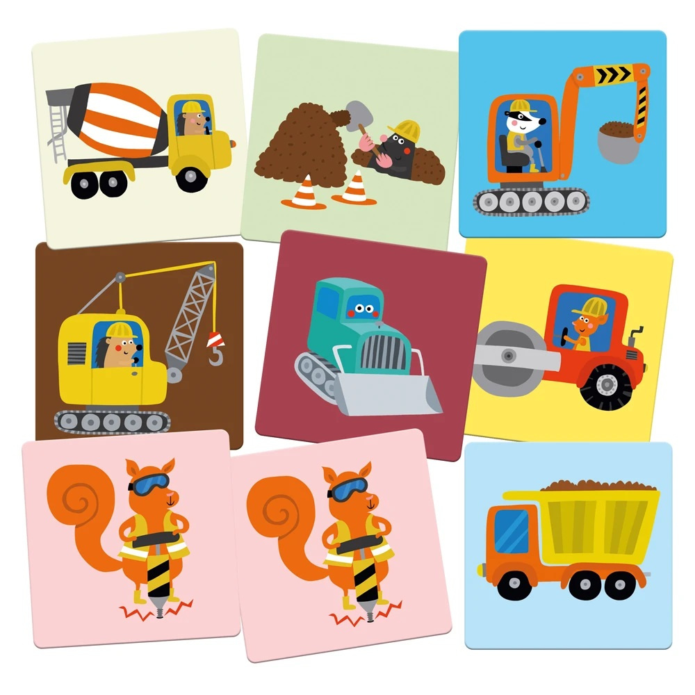 Tady je bagr, tam je míchačka cementu... Kdepak se skrývá náklaďák? Pro tuto klasickou hru je nutná nejenom dobrá paměť, ale i trpělivost. Kdo najde mezi skrytými kartami nejvíce dvojic obrázků, vyhrává!