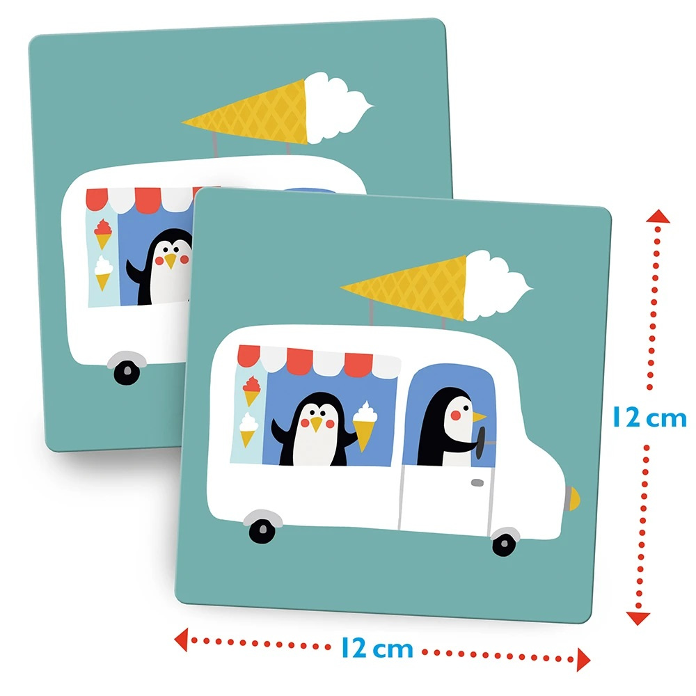 Tady je taxík, tam projíždí skútr... Kdepak se skrývá zmrzlinový vůz? Pro tuto klasickou hru je nutná nejenom dobrá paměť, ale i trpělivost. Kdo najde mezi skrytými kartami nejvíce dvojic obrázků, vyhrává!
