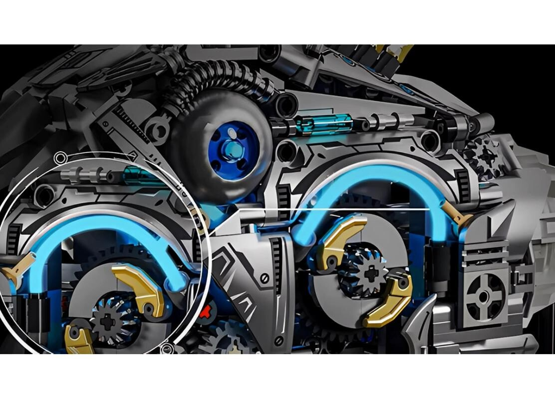Tato stavebnice není pouze statickým modelem. Uvnitř se nachází mechanický systém, který umožňuje modelu pohyb.