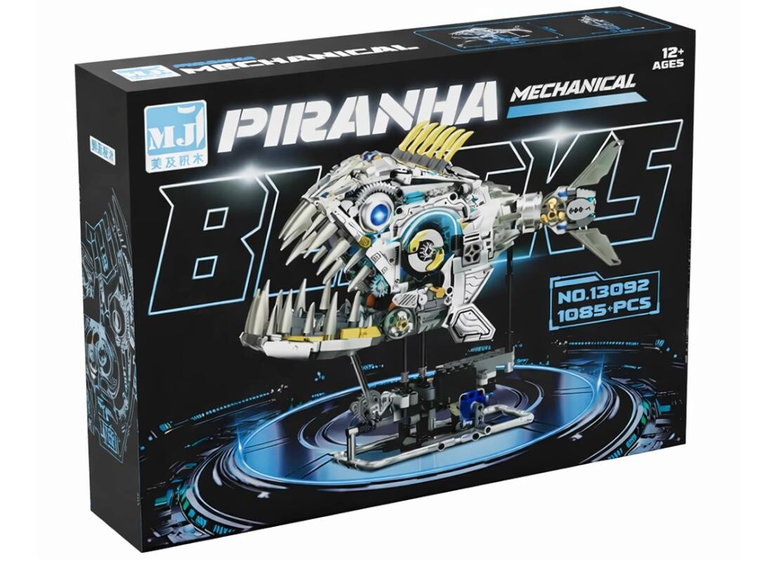 Stavebnice Meiji 13092 Mechanická piraňa je originální model, který propojuje technickou konstrukci, kreativní design a inspiraci přírodou. Na rozdíl od klasických stavebnic nejde o typické vozidlo či architekturu – zde sestavíte stylizovanou mechanickou piraňu, která po dokončení dokáže pohybovat ocasem a otevírat tlamu. Díky tomu jde o velmi zajímavý model nejen pro stavitele, ale také jako netradiční dekoraci.