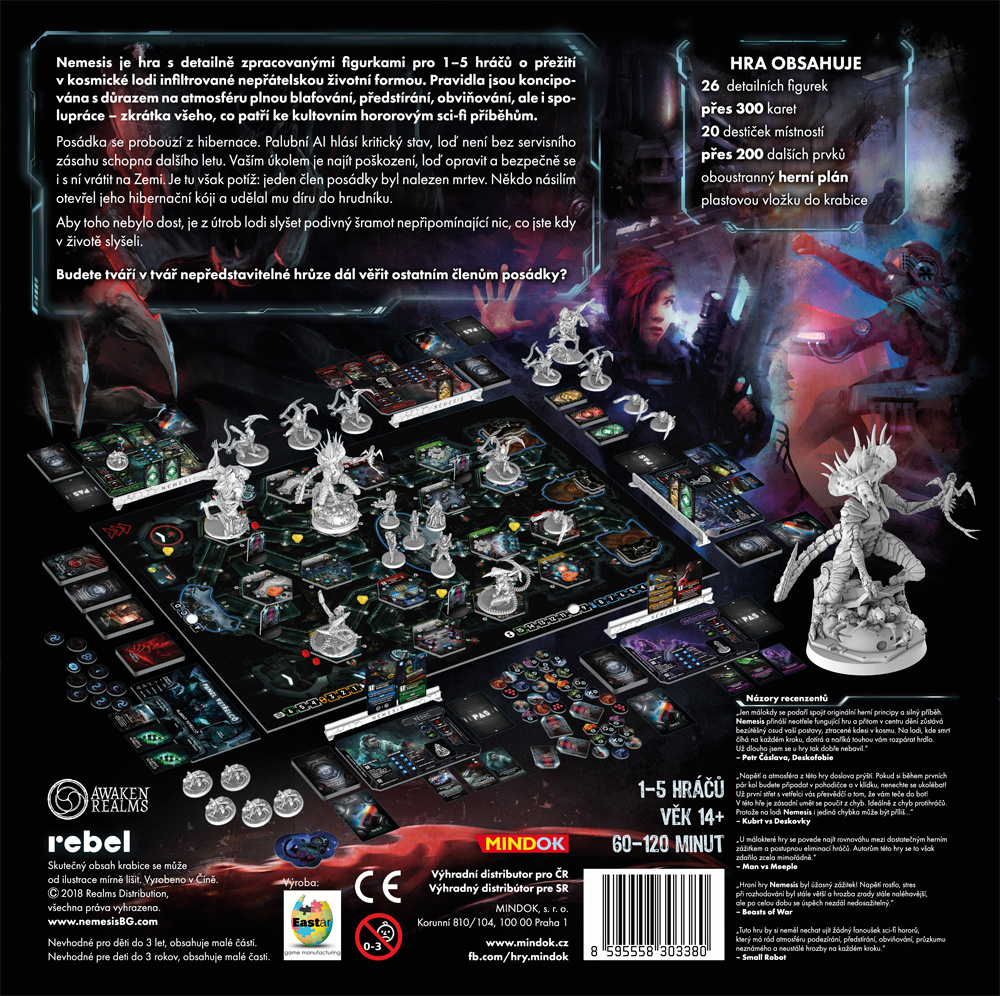 Nemesis je hra s detailně zpracovanými figurkami pro 1-5 hráčů o přežití v kosmické lodi infiltrované nepřátelskou životní formou. Pravidla jsou koncipována s důrazem na atmosféru plnou blafování, předstírání, obviňování, ale i spolupráce – zkrátka všeho, co patří ke kultovním hororovým sci-fi příběhům. Posádka se probouzí z hibernace. Palubní AI hlásí kritický stav, loď není bez servisního zásahu schopna dalšího letu. Vaším úkolem je najít poškození, loď opravit a bezpečně se s ní vrátit na Zemi. Je tu však potíž: jeden člen posádky byl nalezen mrtev. Někdo násilím otevřel jeho hibernační kóji a udělal mu díru do hrudníku. Aby toho nebylo dost, je z útrob lodi slyšet podivný šramot nepřipomínající nic, co jste kdy v životě slyšeli. Budete tváří v tvář nepředstavitelné hrůze dál věřit ostatním členům posádky?