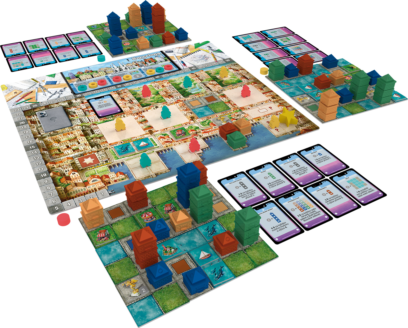 8 různých destiček metropolí nabízí pro každou partii jiné společné bodování.