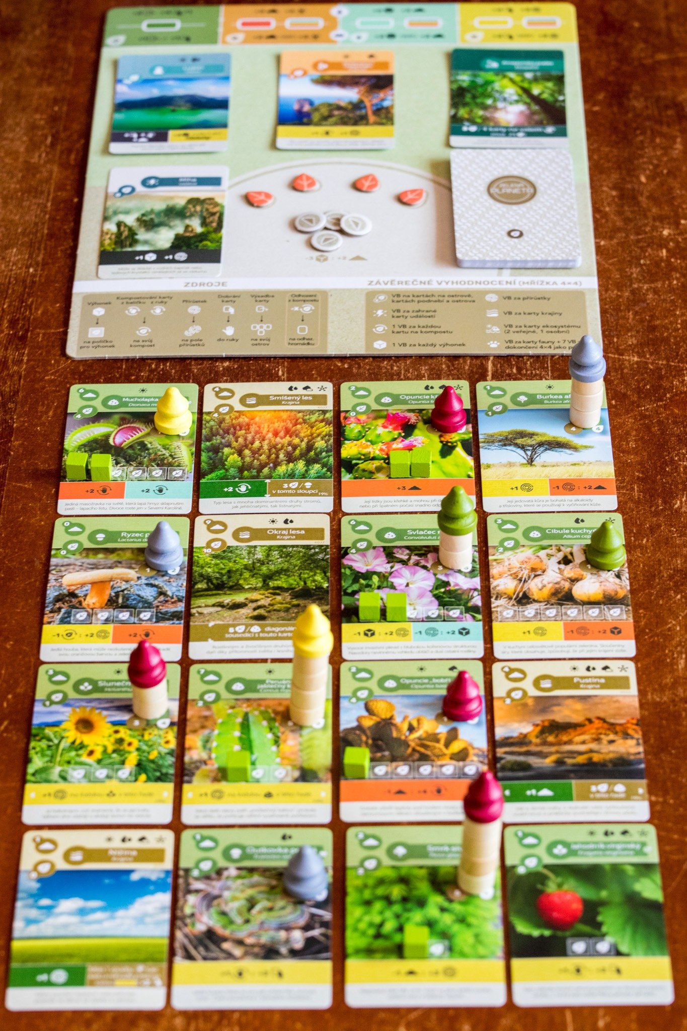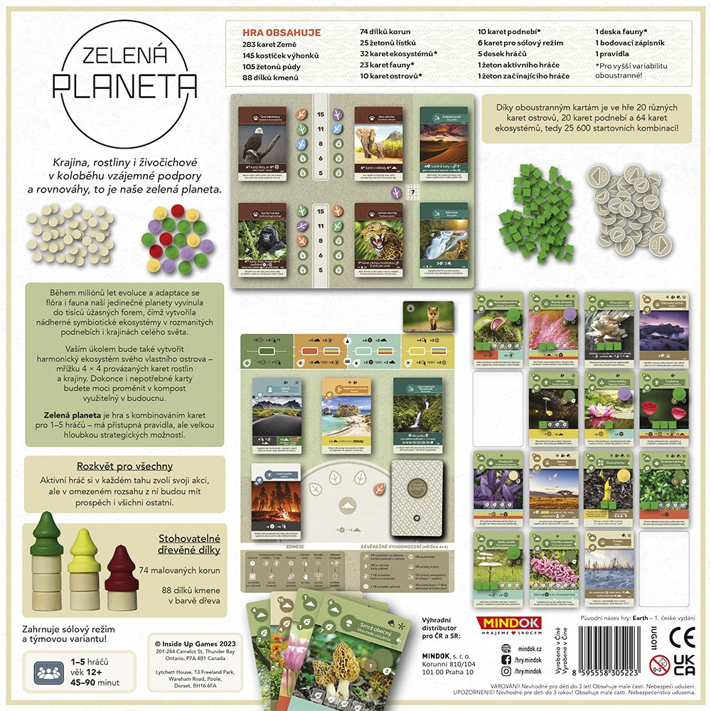 Vaším úkolem bude také vytvořit harmonický ekosystém svého vlastního ostrova – mřížku 4 × 4 provázaných karet rostlin a krajiny. Dokonce i nepotřebné karty budete moci proměnit v kompost využitelný v budoucnu. Zelená planeta je hra s kombinováním karet pro 1–5 hráčů – má přístupná pravidla, ale velkou hloubkou strategických možností.
