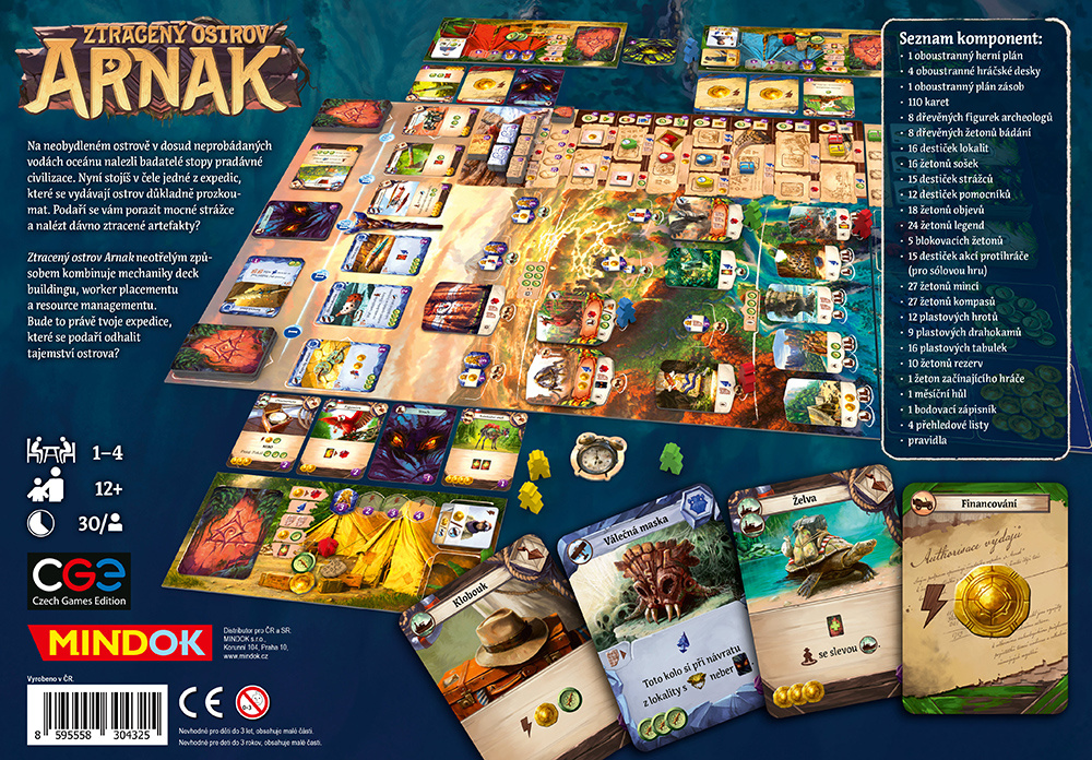 Ztracený ostrov Arnak neotřelým způsobem kombinuje mechaniky deck buildingu, worker placementu a resource managementu. Bude to právě tvoje expedice, které se podaří odhalit tajemství ostrova?
