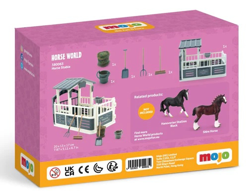 Novinka červenec 2023 - Poznejte svět koní a jejich potřeb k chovu! V tomto setu najdete stáj i s vybavením, kde koníci bydlí. Z vybavení je zde lopata, vydle, smeták, kyblík, pytel ovsa a košík na seno. Tato realistická stáj může dětem dopomoci poznávat skutečné vlastnosti a charakter její předlohy. Každý produkt je přísně testován dle široké řady mezinárodních standardů. Ohrada je ručně malována. Koně nejsou součástí balení.