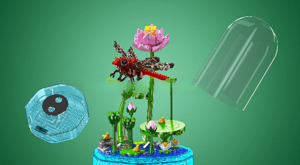 Vstupte do rozkvetlé zahrady plné detailů a klidu. Stavebnice Svět hmyzu: Vážka z kreativní série od Mould King vás zavede k leknínovému jezírku, kde na zelených listech a růžových lotosových květech spočívá elegantní červená vážka. Celý model je umístěn na otočném podstavci s LED podsvícením a hudbou, který přidává kouzlo nejen během dne, ale i večer jako originální dekorace.