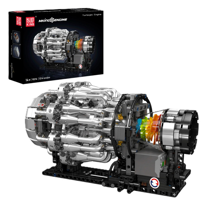 Objevte fascinující svět letectví se stavebnicí detailně zpracovaného proudového motoru! Tato technická sada od Mould King obsahuje 1214 precizně navržených dílků, ze kterých sestavíte funkční model o délce 28 cm.