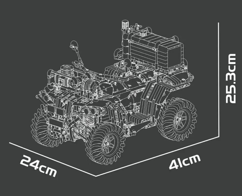 Model měří 41 cm na délku, 24 cm na šířku a 25,3 cm na výšku. Je dostatečně robustní pro jízdu po různých površích, ale zároveň dostatečně detailní, aby zaujal i vystavený na poličce.