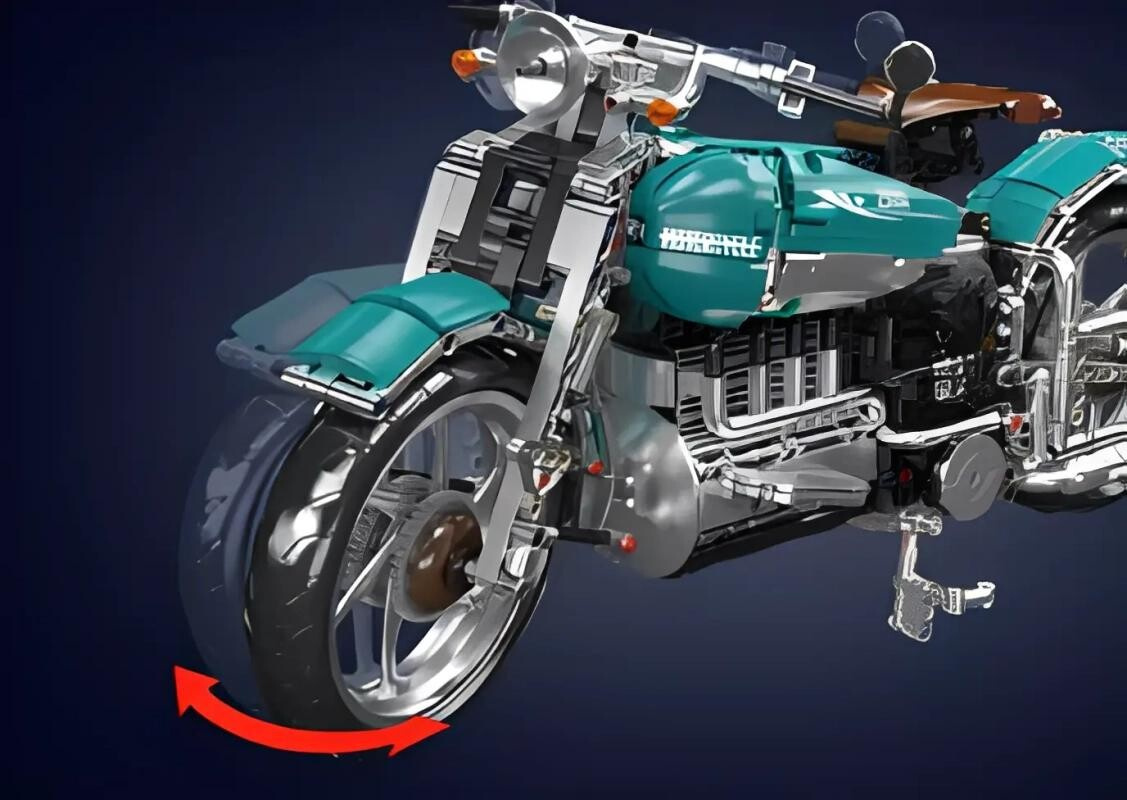 Motor a převodovka obsahují pohyblivé soukolí, které se při jízdě modelu rozpohybuje. Pohon zadního kola zajišťuje článkový řetěz spojený s převodovkou. Mnoho plastových dílů je pokovených, aby co nejvěrněji napodobily chromovaný vzhled skutečného stroje.