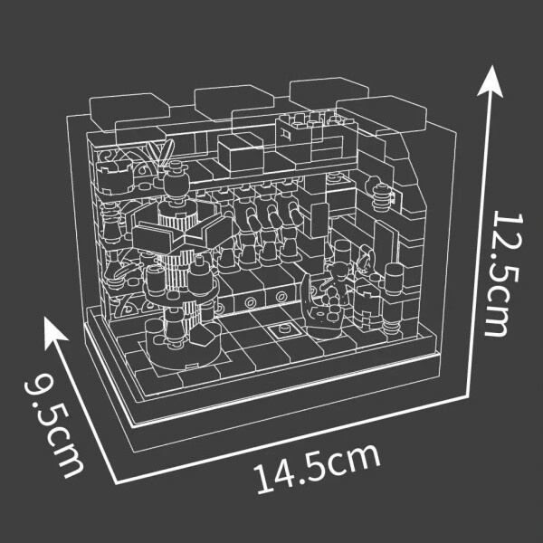 14,5 cm (délka) × 9,5 cm (šířka) × 12,5 cm (výška) – ideální velikost pro hraní i vystavení.