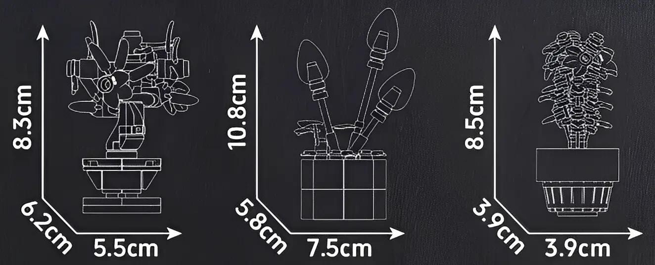 Miniaturní stavebnice tří originálních květin v květináči – Kaly, Bonsaje a Květu radosti – jsou malou, ale nápaditou radostí pro každého, kdo rád tvoří.